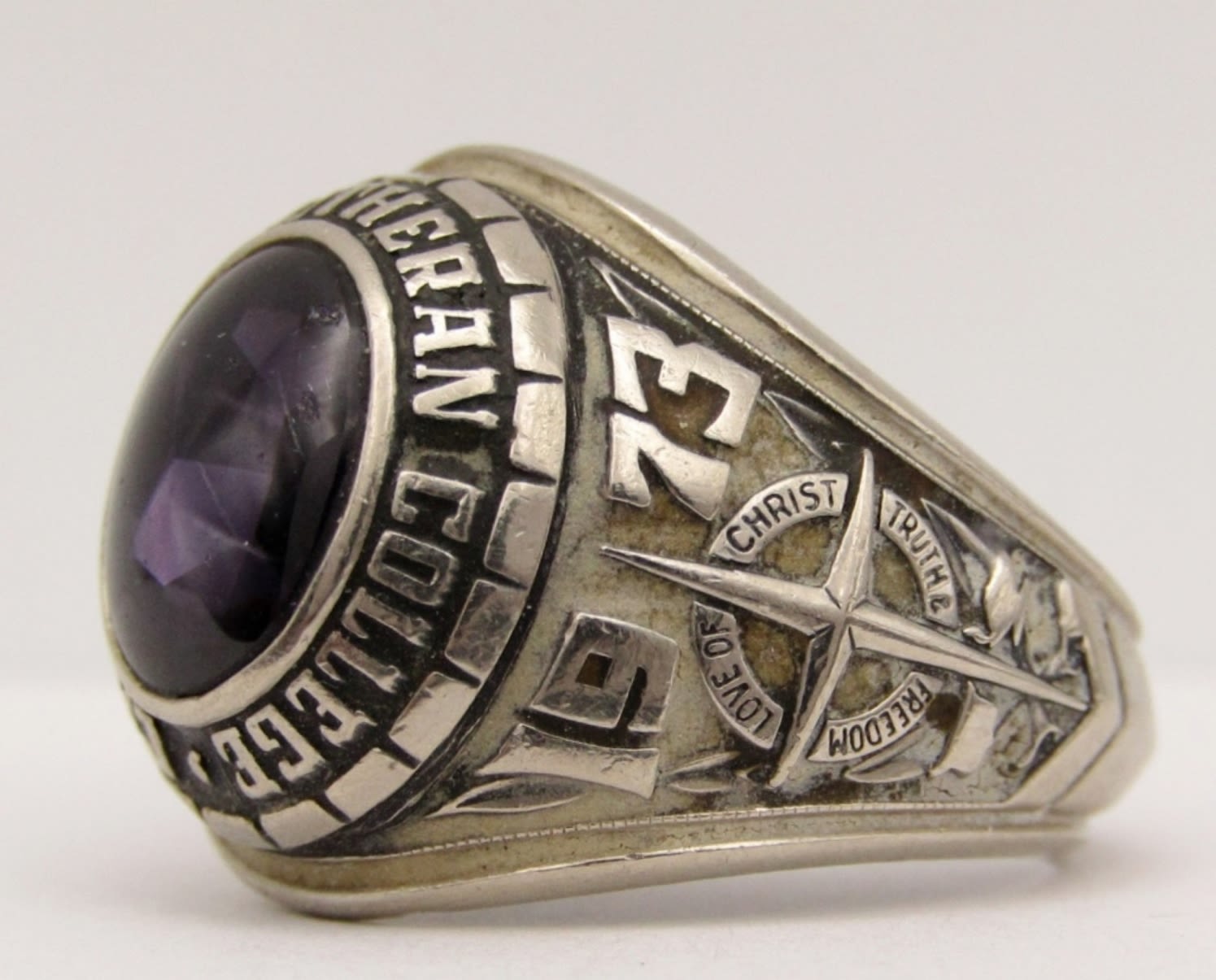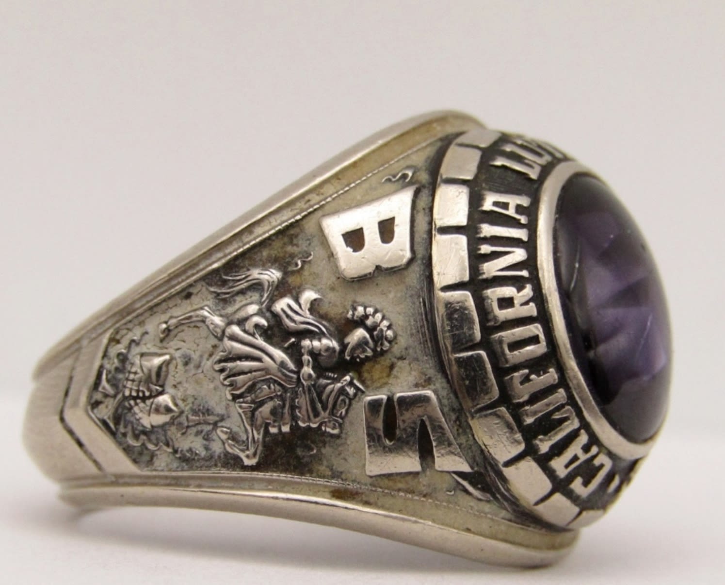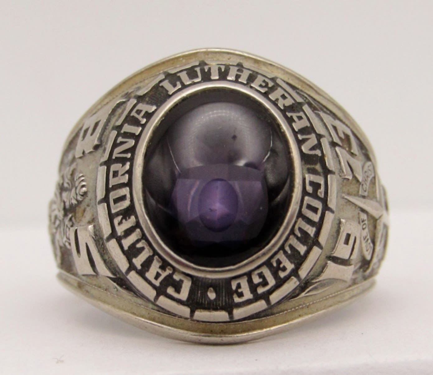 CLASS RING WITH AMETHYST CENTER-RING SIZE 10-TOTAL 8 DWT