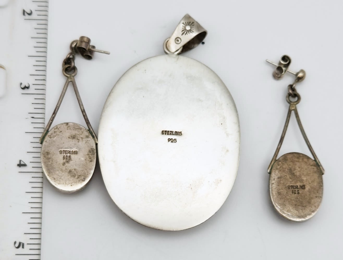 PENDANT WITH MATCHING PAIR OF PIERCED DANGLY EARRINGS-TOTAL 33 DWT