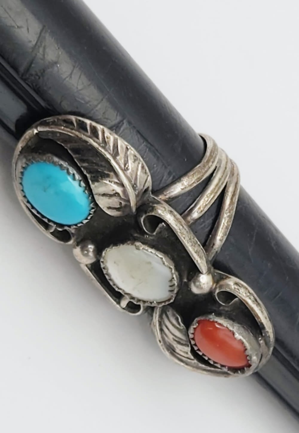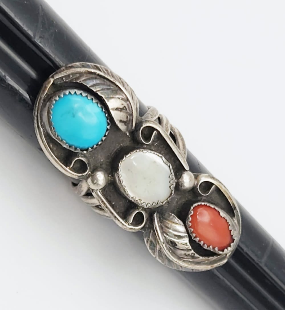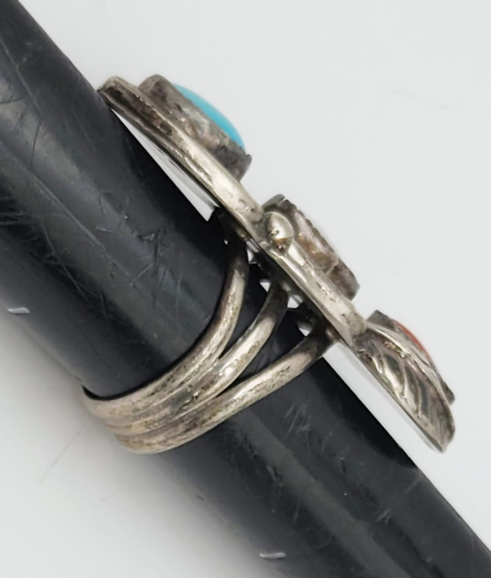 WITH TURQUOISE-MOTHER OF PEARL & RED CORAL STONES-LEAF DESIGN-TOTAL 7 DWT-TOTAL 7 DWT