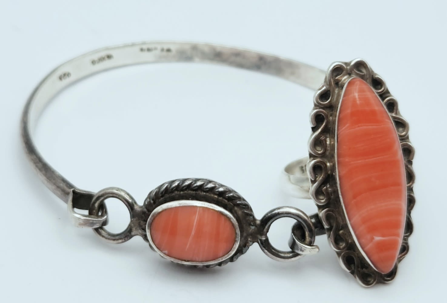 RING with OBLONG STONE SIZE 9 & HINDGED CUFF BRACELET – 18 DWT