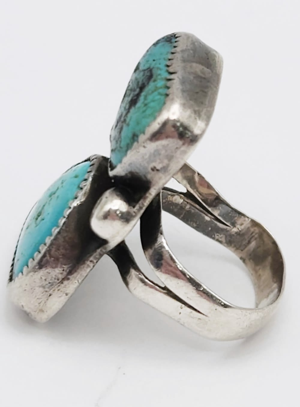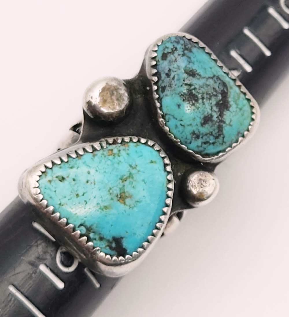 TURQUOISE STONES! BAND IS BENT-RING SIZE 5-TOTAL 7 DWT