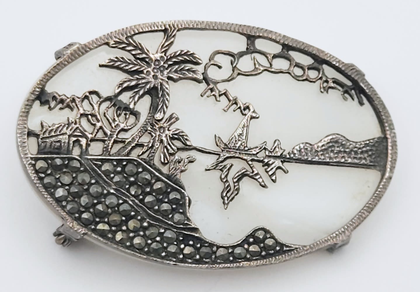 MARCASITE ACCENTS – TROPICAL OBLONG PIECE – 2″ x 1 1/4″ – VERY PRETTY (11 DWT)