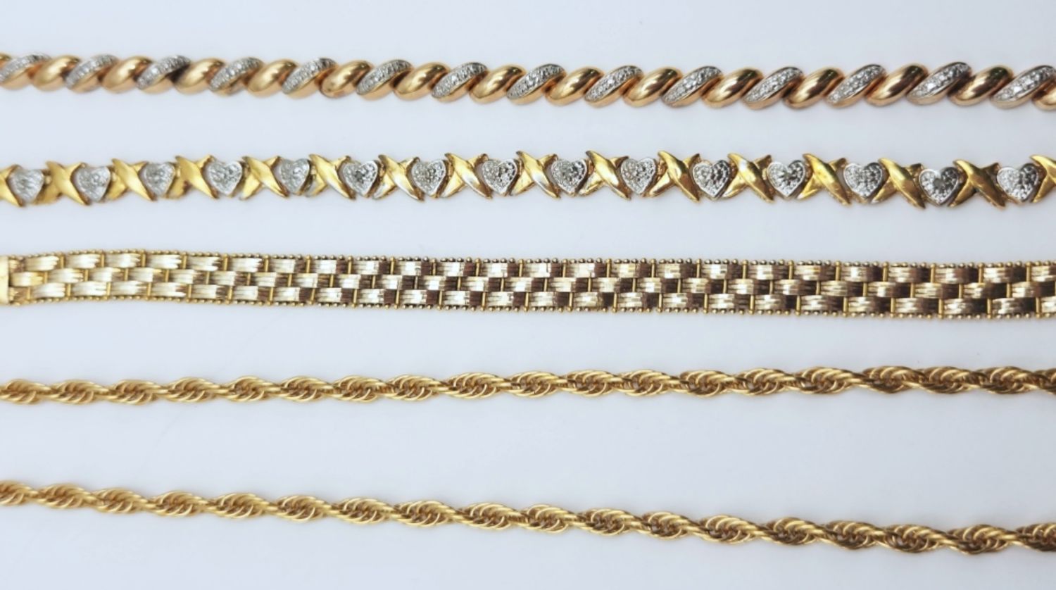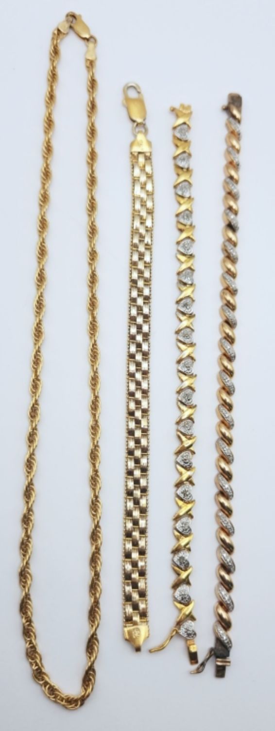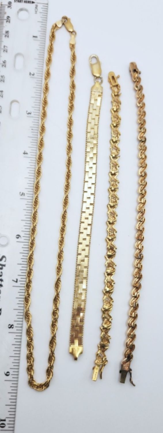 (3) BRACELETS (1) NECKLACE 16″ LONG – 38 DWT