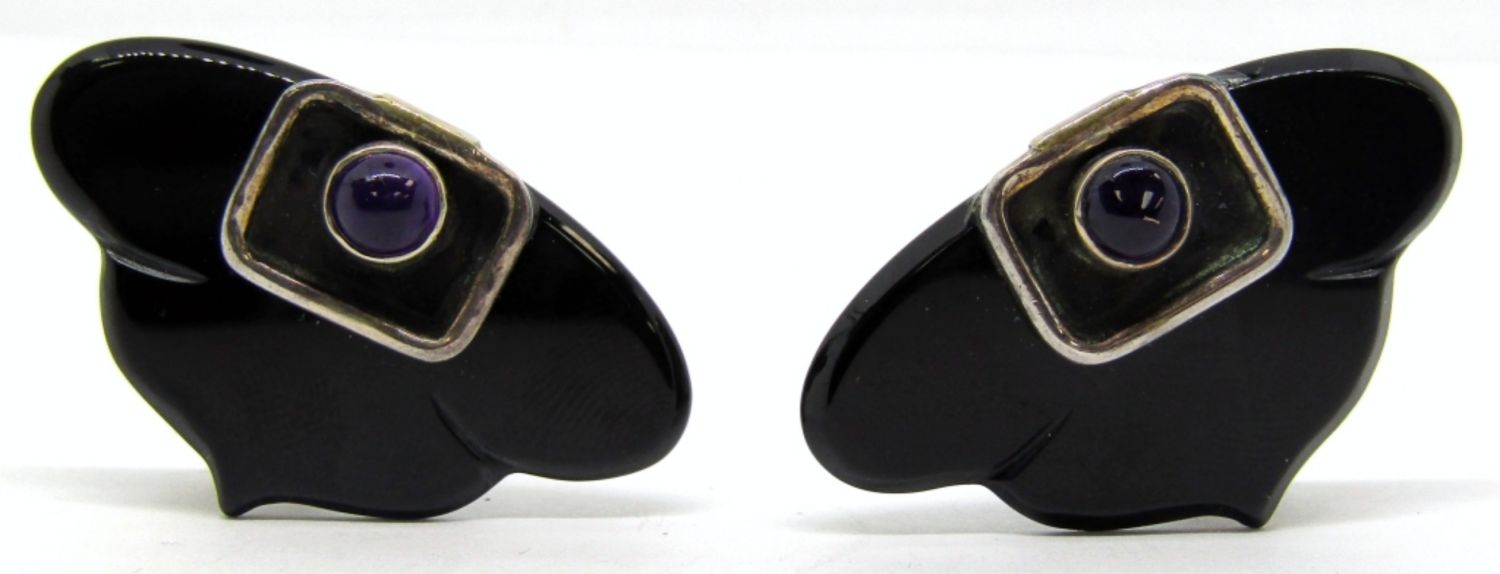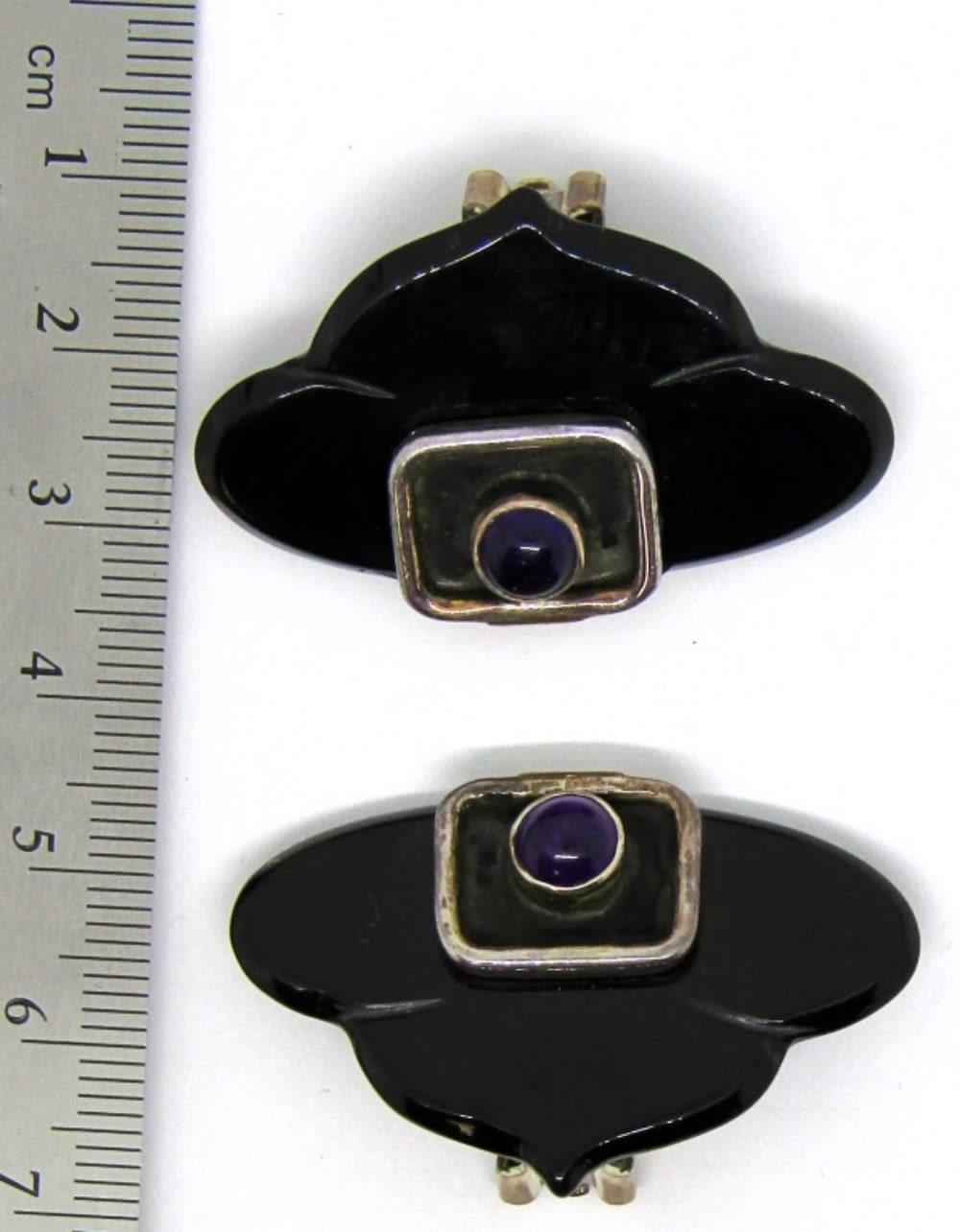 BLACK LUCITE & VIOLET CENTER STONE-TOTAL 15.3 DWT