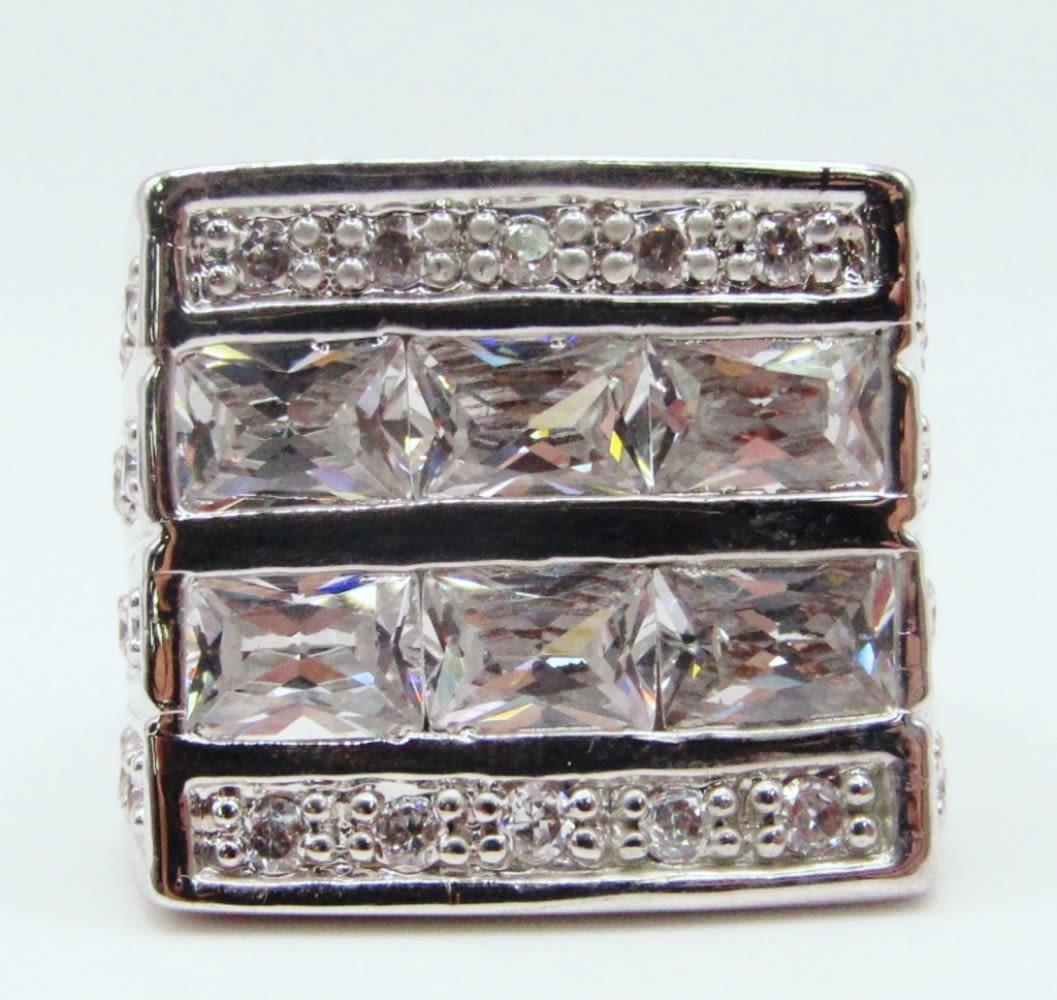 LOADED WITH CLEAR STONES-RING SIZE 9-TOTAL 15 DWT