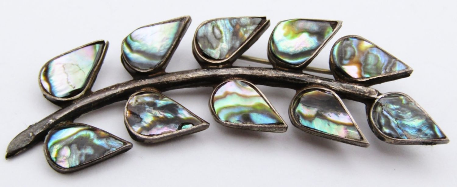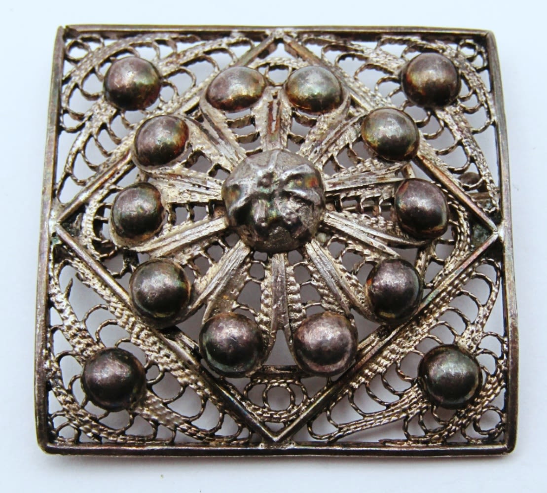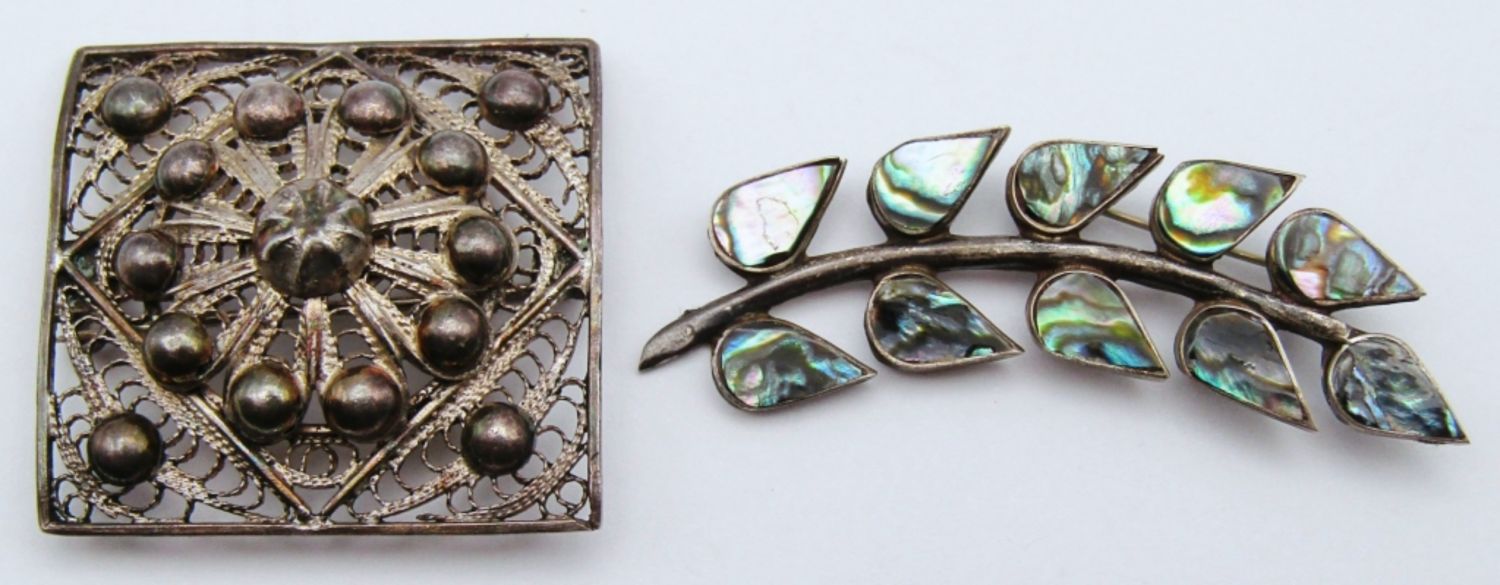 DESIGN WITH ABILONE INLAY & (1)FILIGREE SQUARE BROOCH-TOTAL 11 DWT