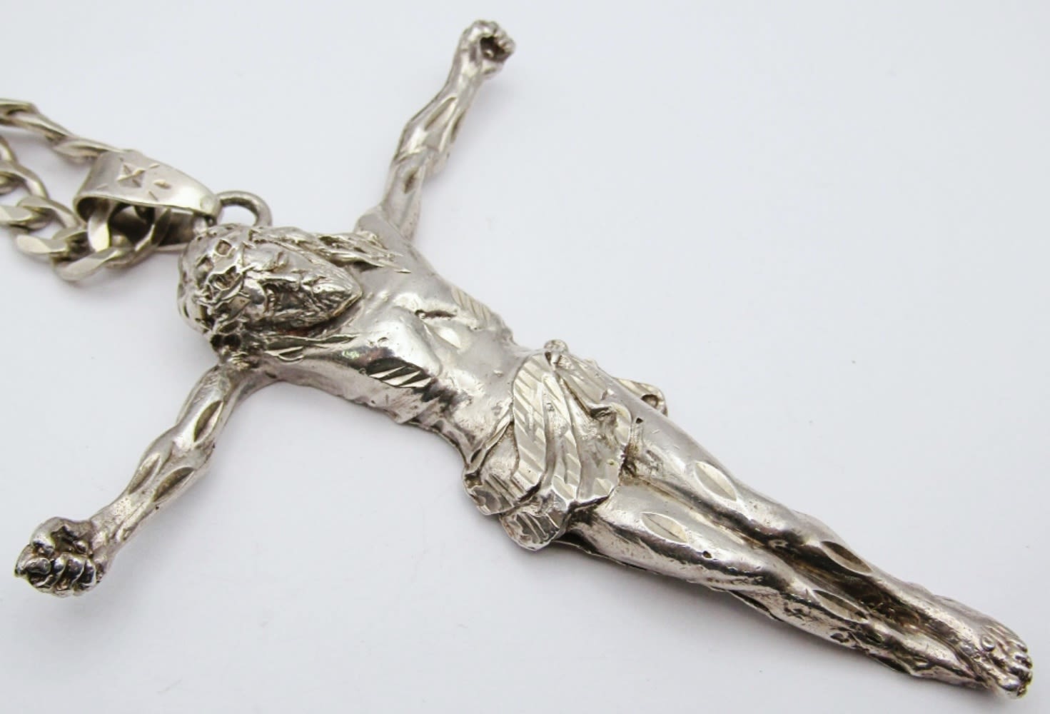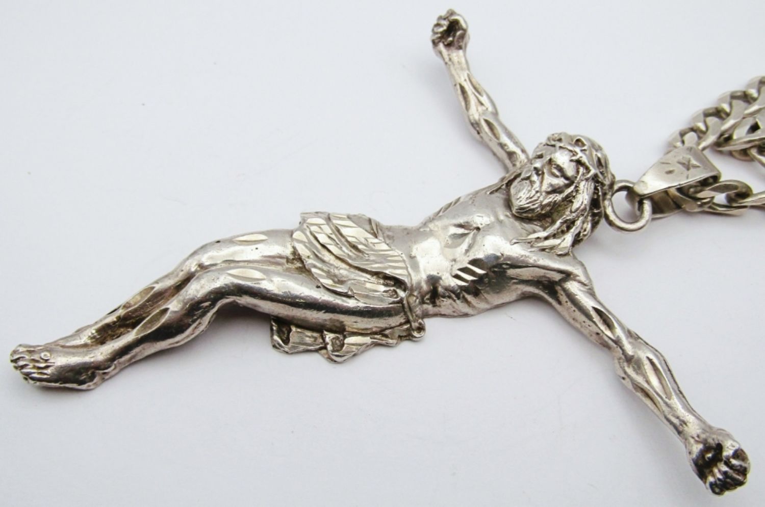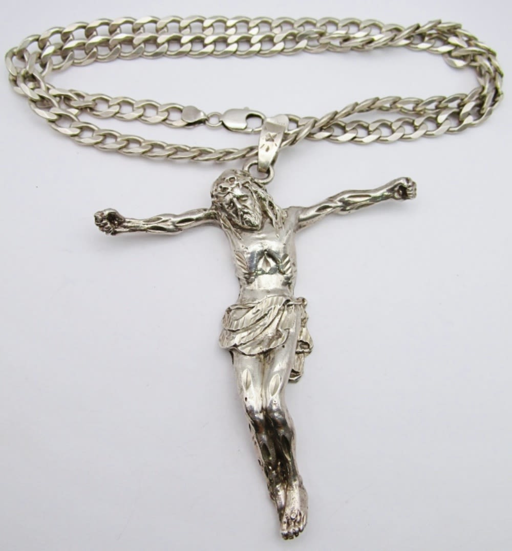 WITH LARGE JESUS PENDANT-NECKLACE MARKED ITALY AND MEASURES 27 INCHES-TOTAL 66 DWT