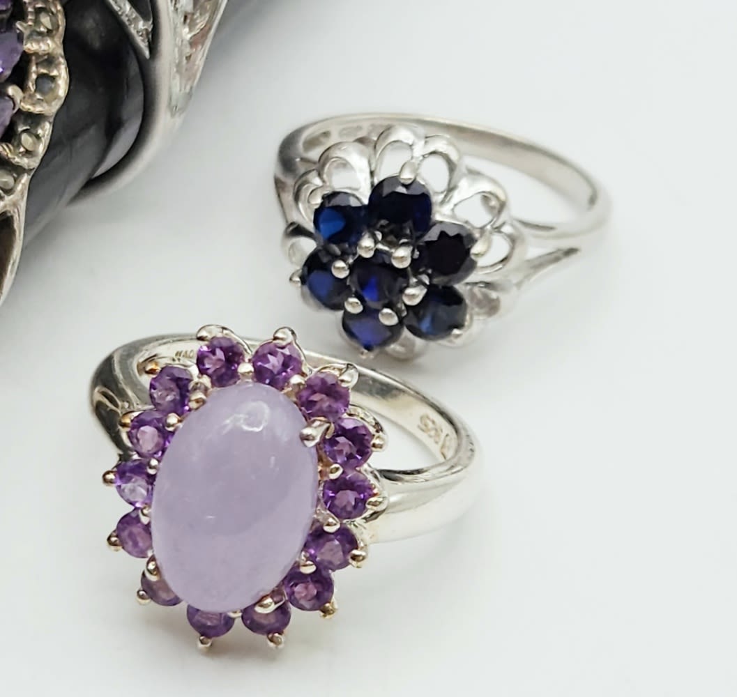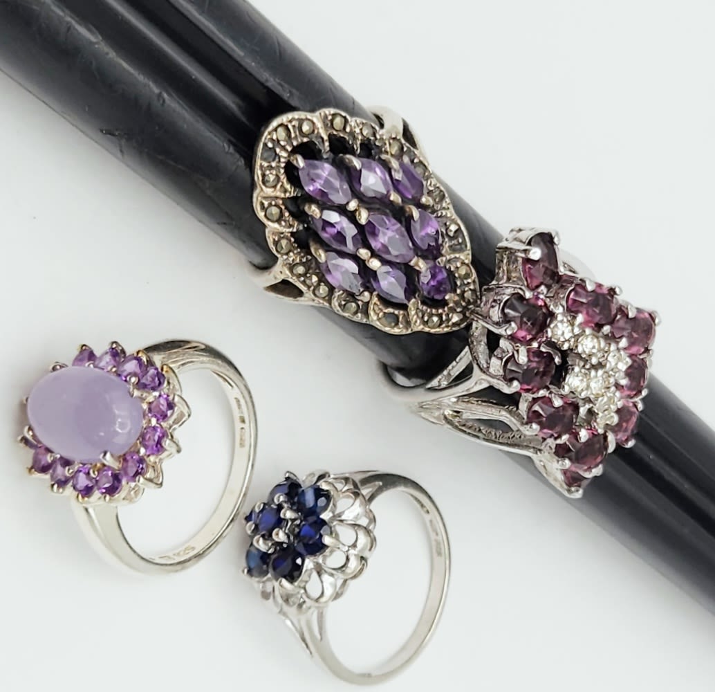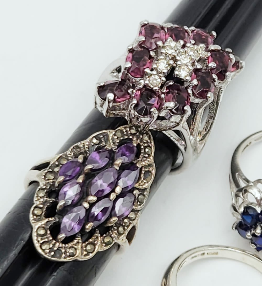 AMETHYST STONES-MARCASITE-VARIOUS SIZES 6.5-7.5-TOTAL 13 DWT