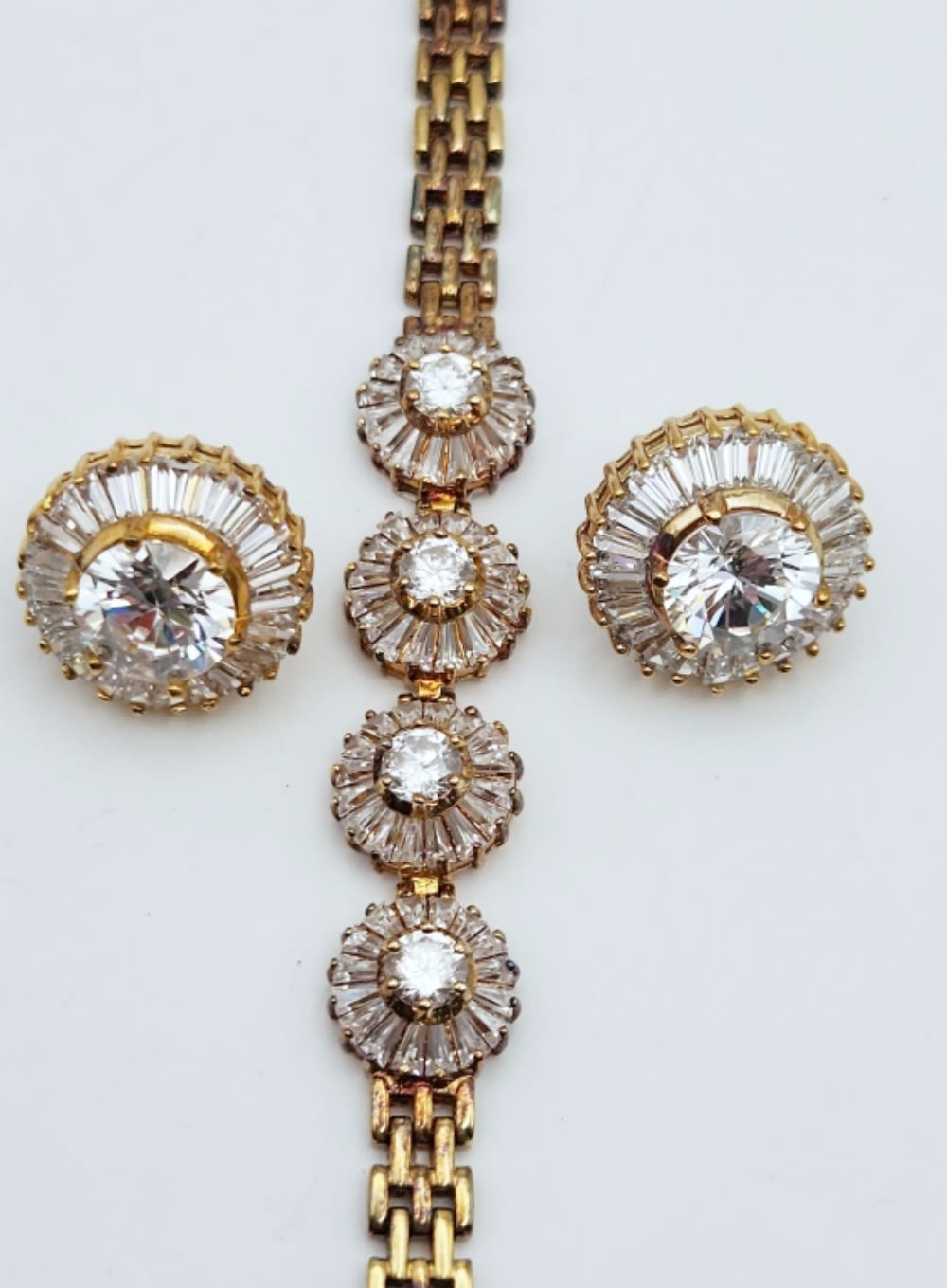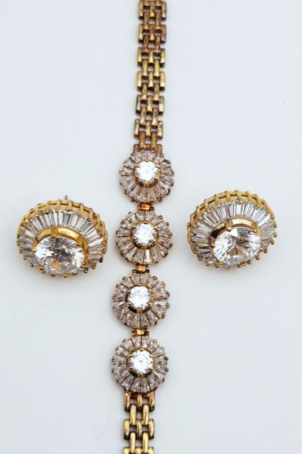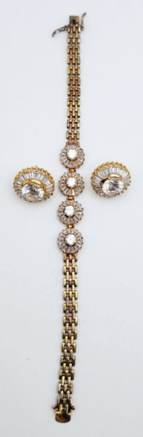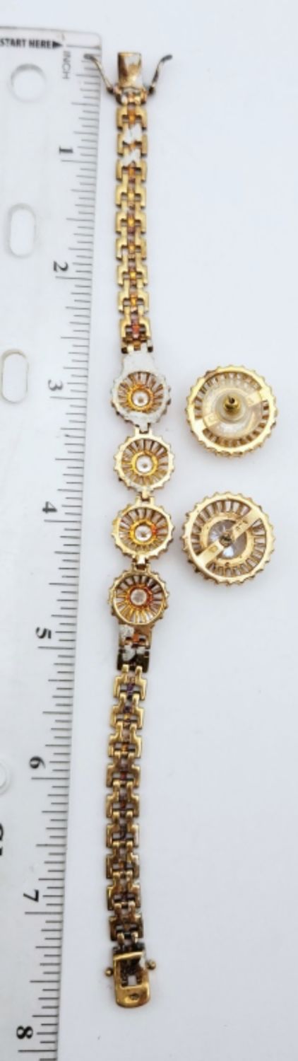 WITH CLEAR STONE FLOWER ACCENTS WITH MATCHING PAIR OF PIERCED EARRINGS-BRACELET MEASURES 7.5 INCHES-TOTAL 21 DWT