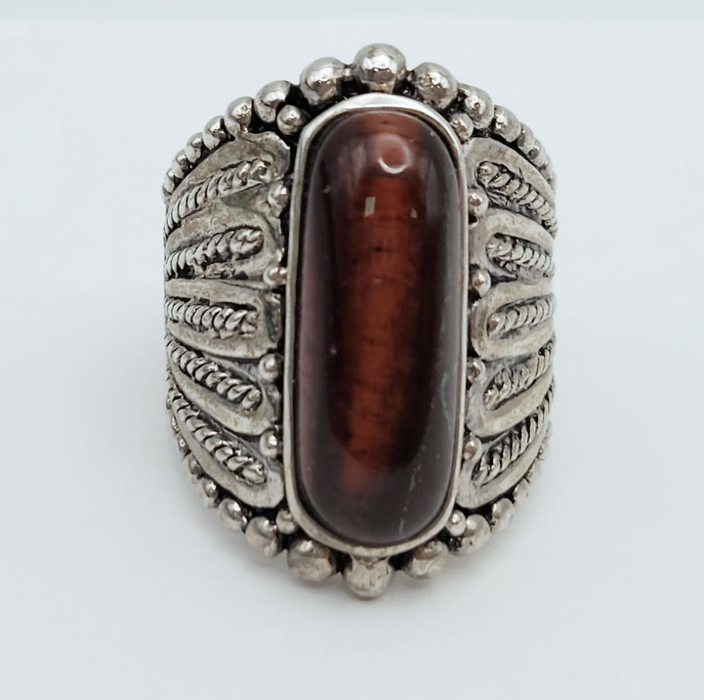 TONED BROWN CENTER STONE-RING SIZE 7.5-TOTAL 7 DWT