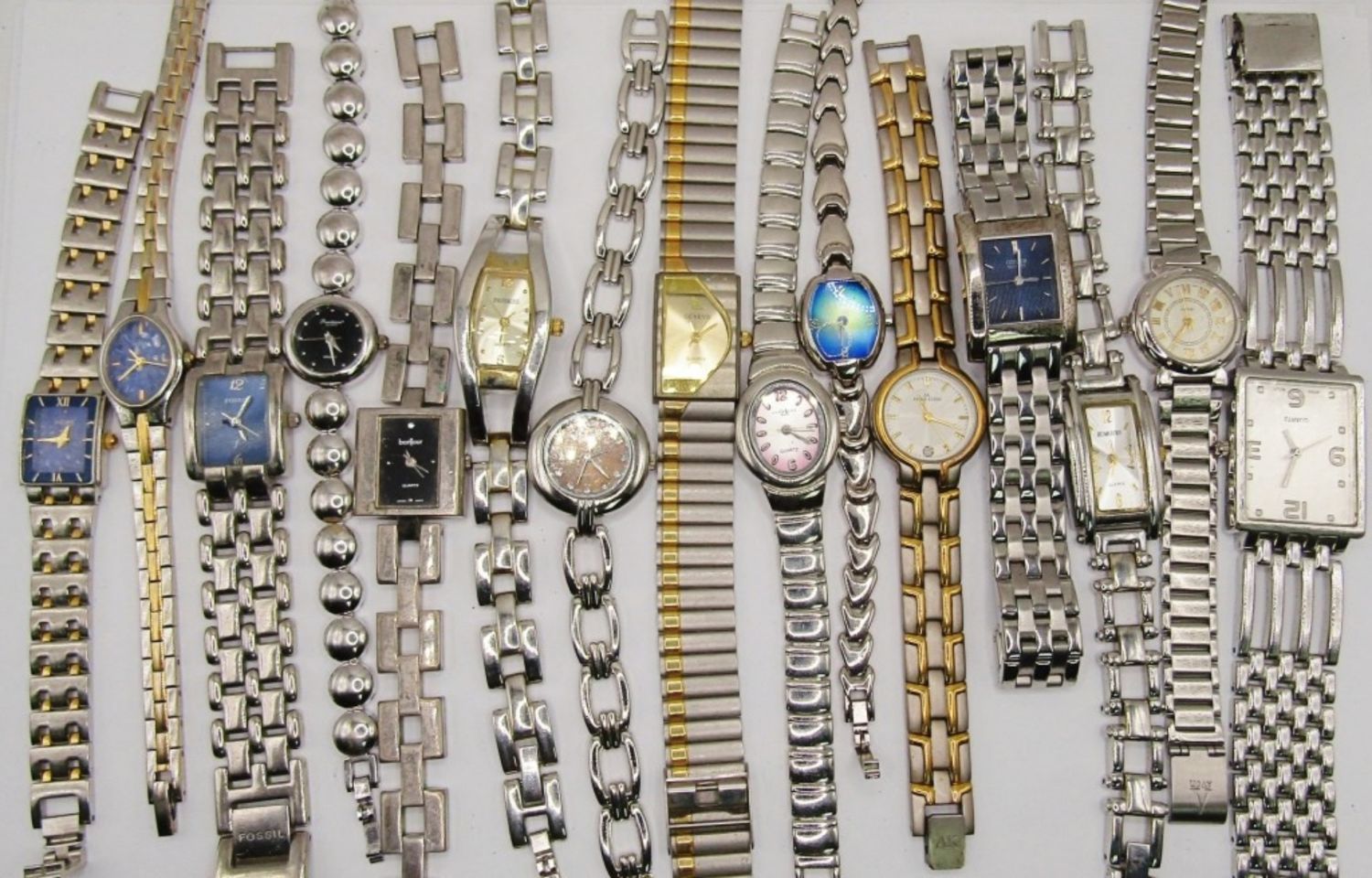 FOSSIL-GENEVA QUARTZ-BONJOUR QUARTZ-PULSAR-PRECISION BY GRUEN-RELIC-PASSAGES-LA EXPRESS-ANN KLEIN-RUMOURS-CITIZEN-COTED AZUR & MORE! ALL WATCHES UNTESTED/PARTS/REPAIR