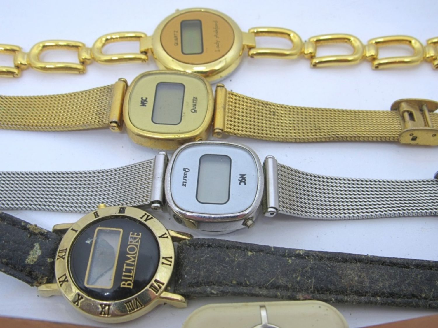 8 assorted digital watches, all untested as to working. Includes Biltmore, Timex, and more