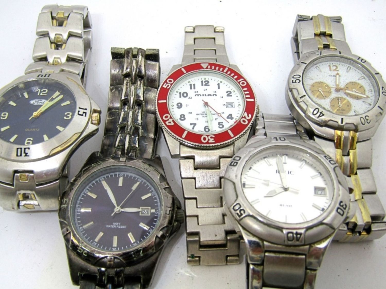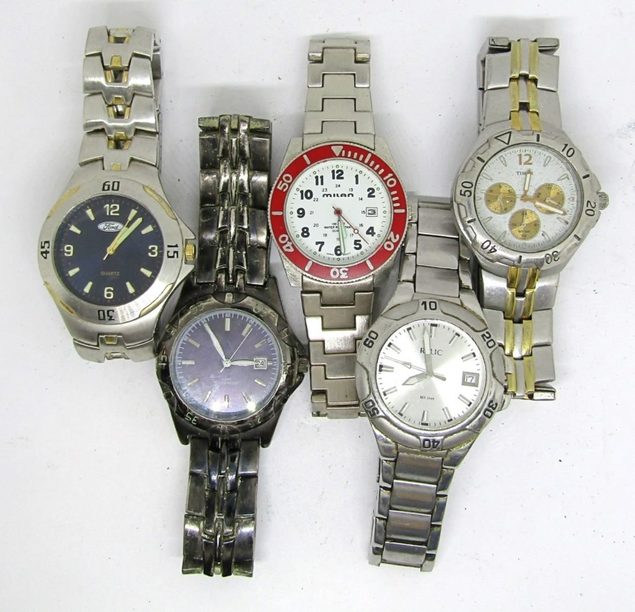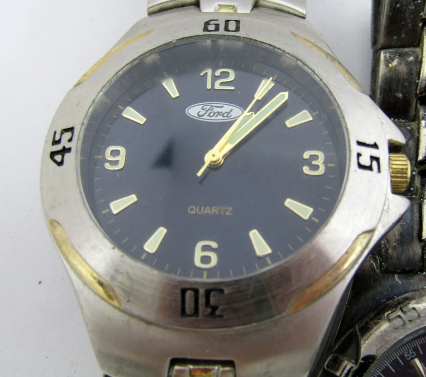 “FORD” QUARTZ-MILAN DAY DATE-RELIC 165 FEET CALENDAR-TIMEX CHRONOGRAPH (MISSING BACK) & MORE! ALL WATCHES UNTESTED