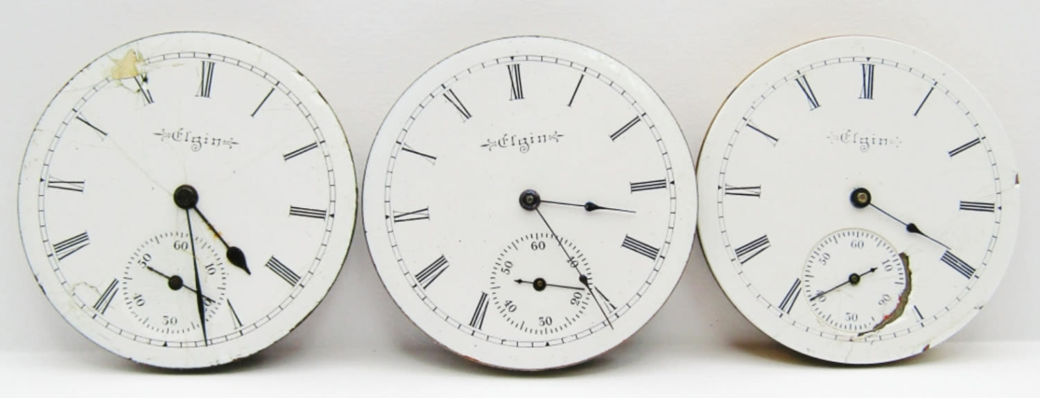 1897 Grade 157 (16s, 7j), 1901 Grade 211 (16s, 7j), 1920 Grade 291 (16s, 7j); Untested, Watch Faces Only, No Cases. Estimated Production Years. For Parts/Repair!