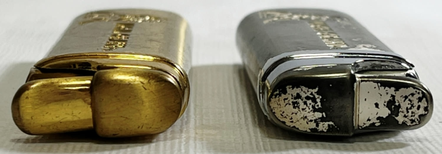 (1) Gold tone MGM Grand Hotel and Casino Advetising Lighter. (1) Silver tone MGM Grand Hotel and Casino Lighter.