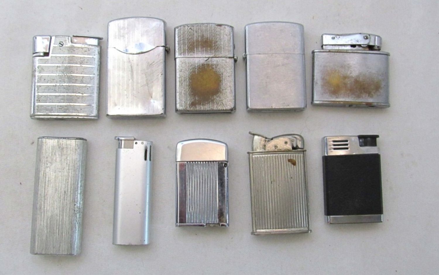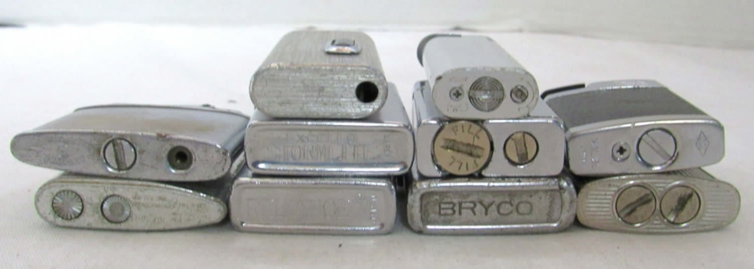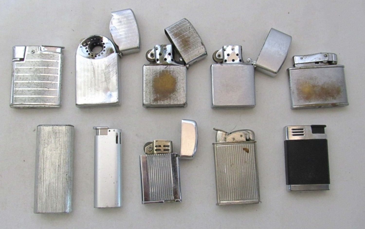 GOOD MIX! TEN LIGHTERS MODERN AND VINTAGE STYLES. MULTIPLE BRANDS INCLUDING CONTINENTAL, COLIBRI, RELIANCE, BRYCO, AND MORE! ALL UNTESTED AND PRE OWNED.