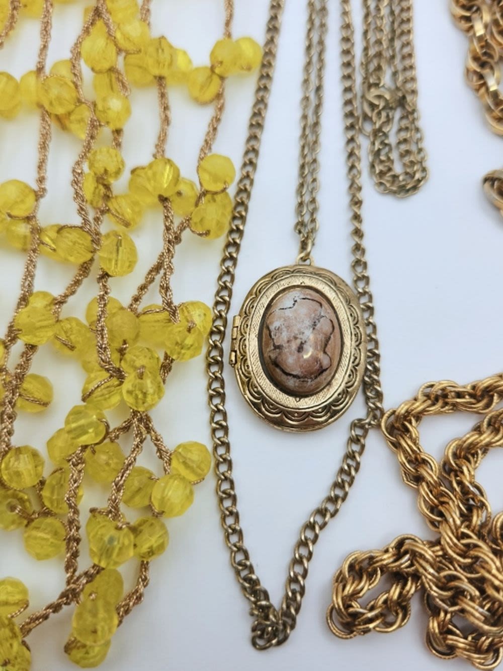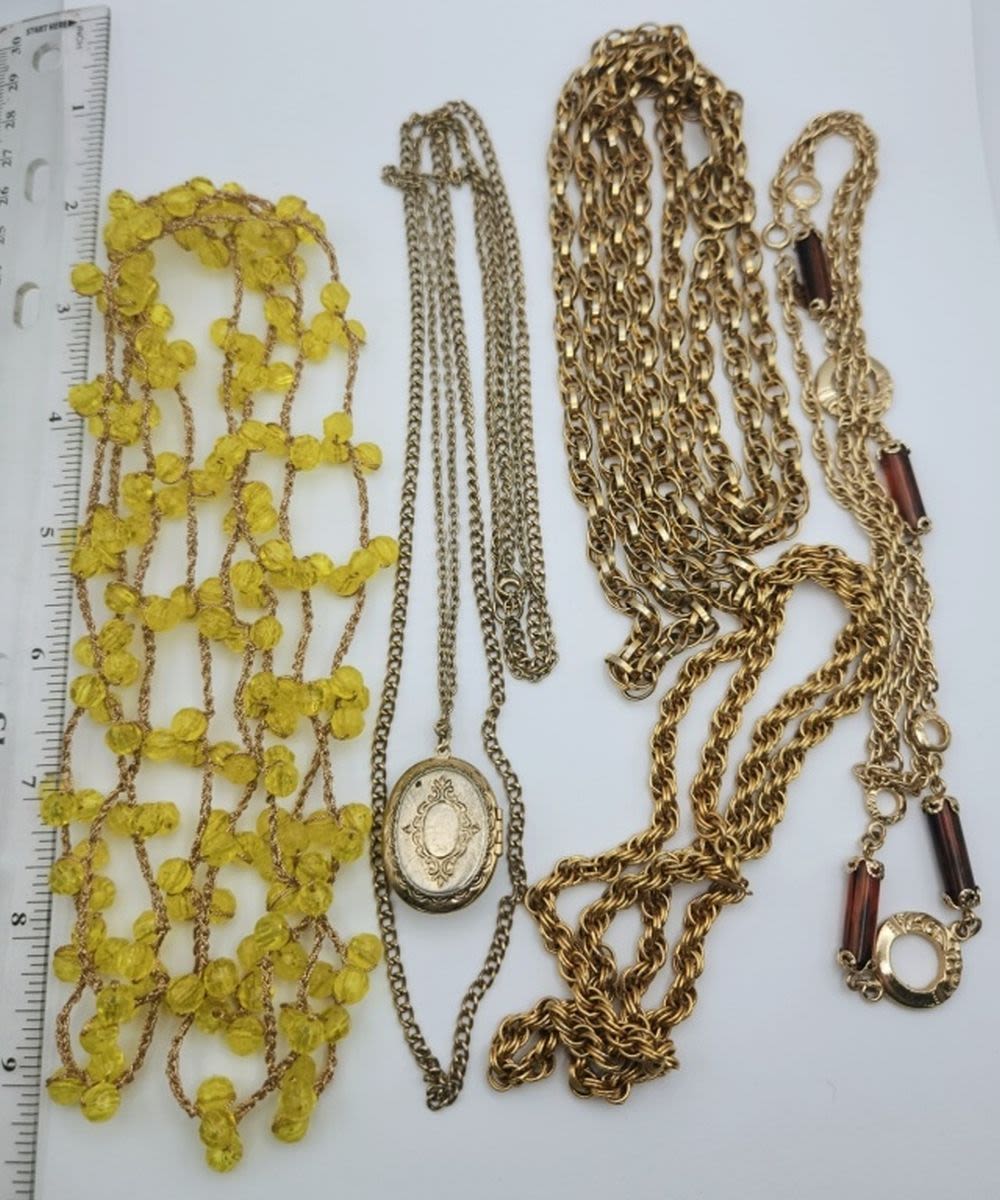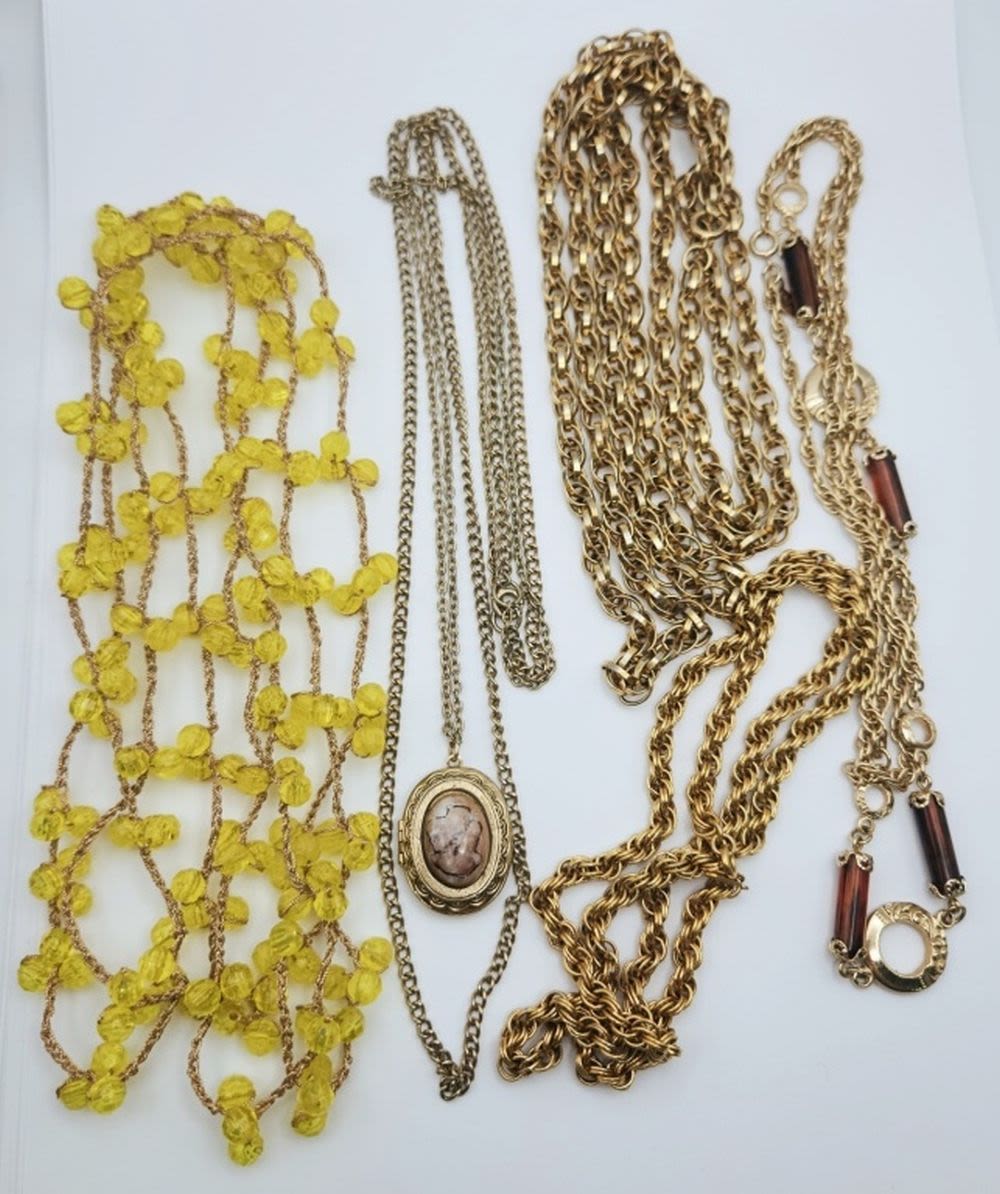 MONET-LUCITE-LOCKET-GREEN BEAD-ALL DIFFERENT LENGTHS/DESIGNS