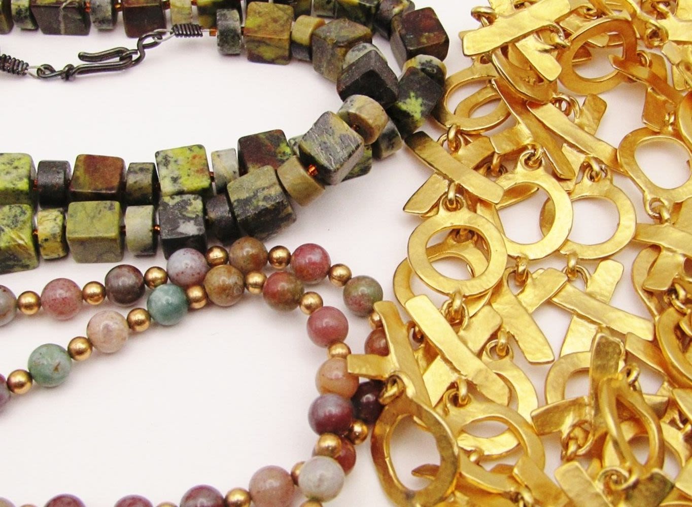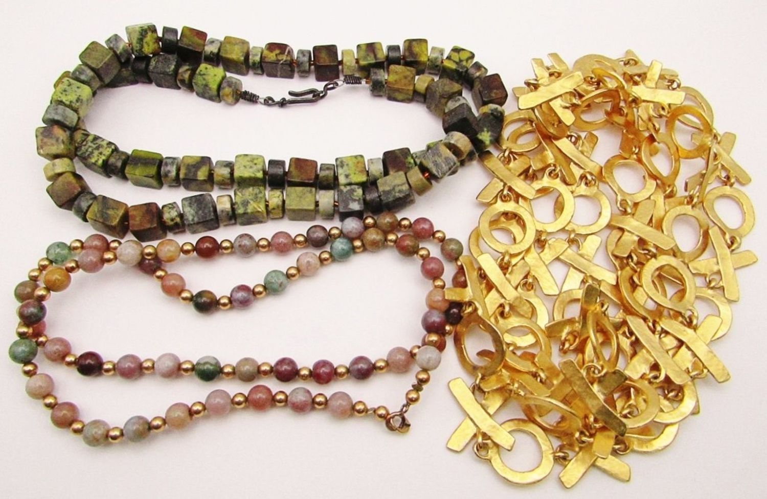 (1)WITH BEADS (1)WITH GREEN MARBLE POLISHED STONES-VARIOUS LENGTHS