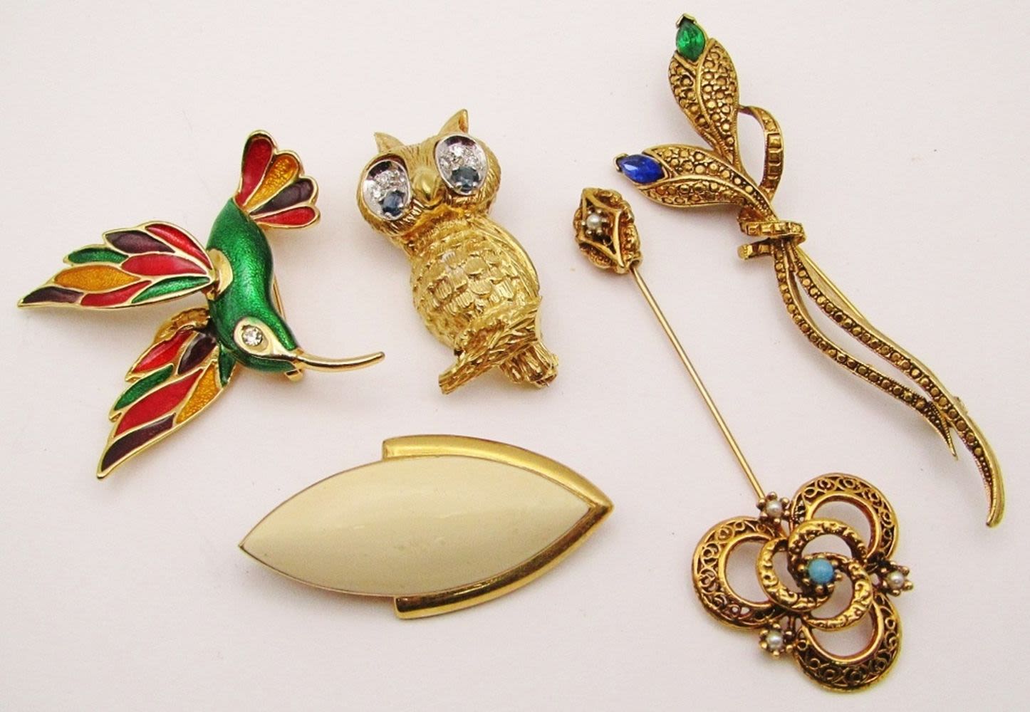 RHINESTONES-ENAMEL-LUCITE-HUMMINGBIRD-OWL & MORE!