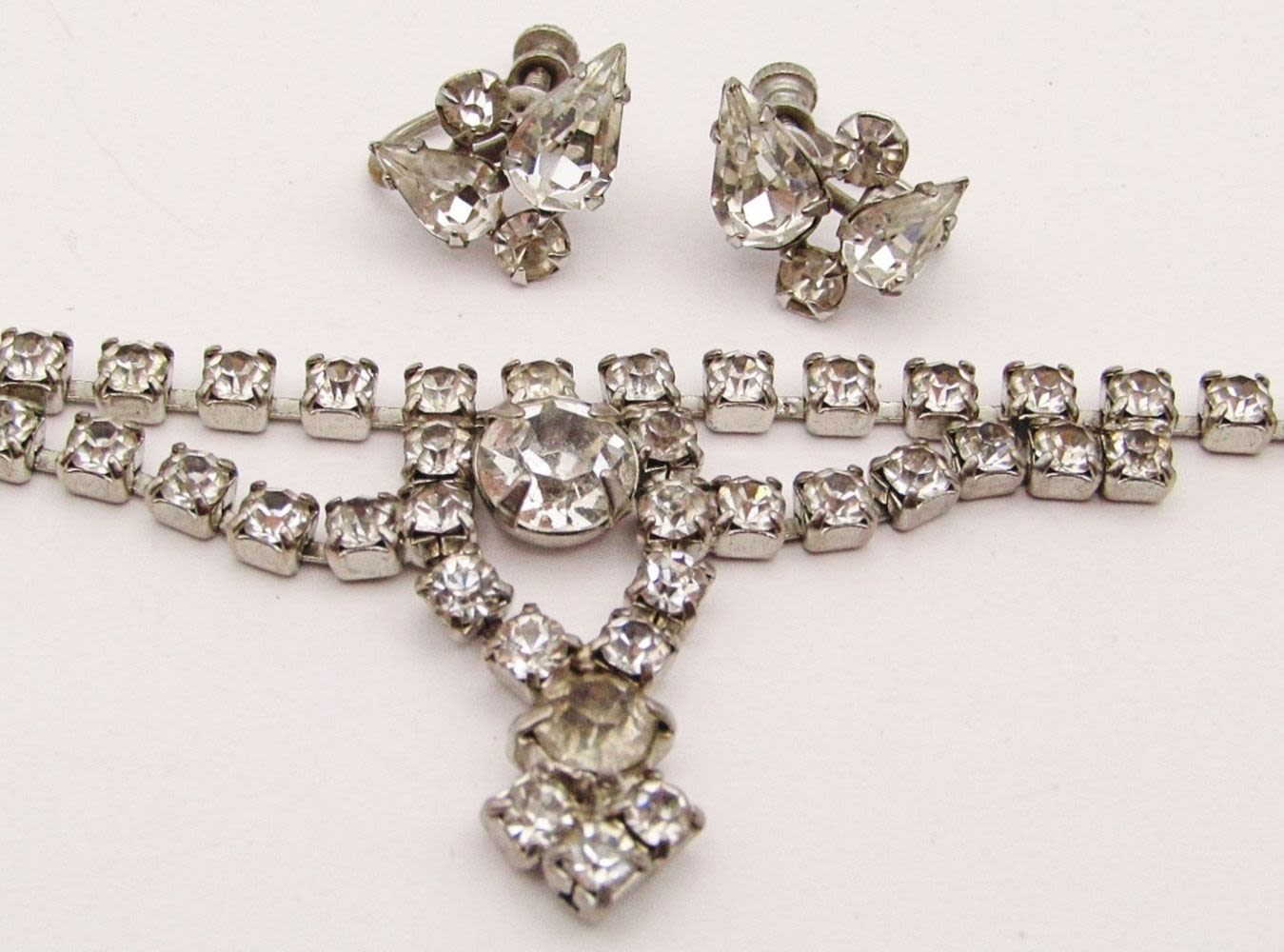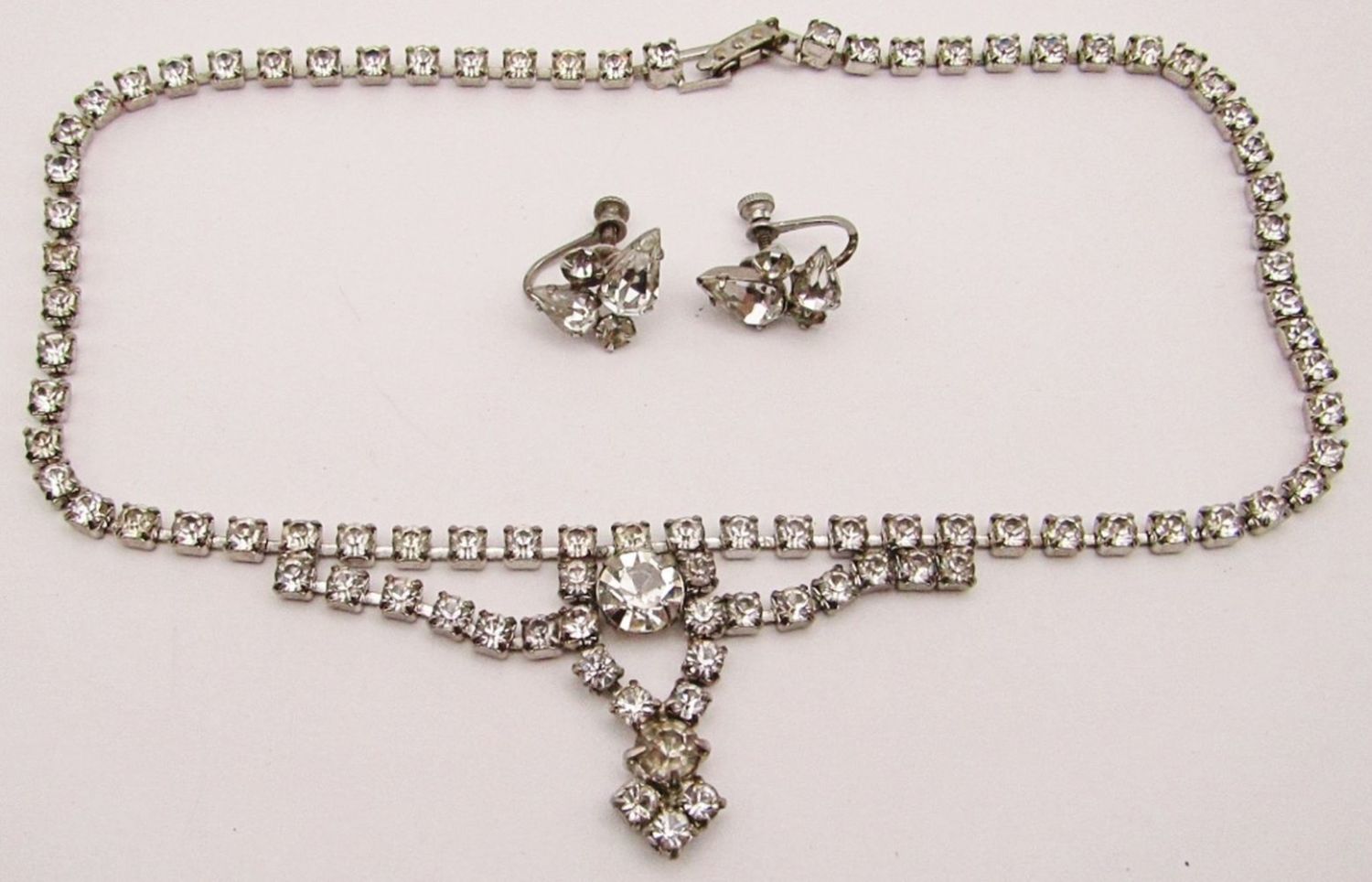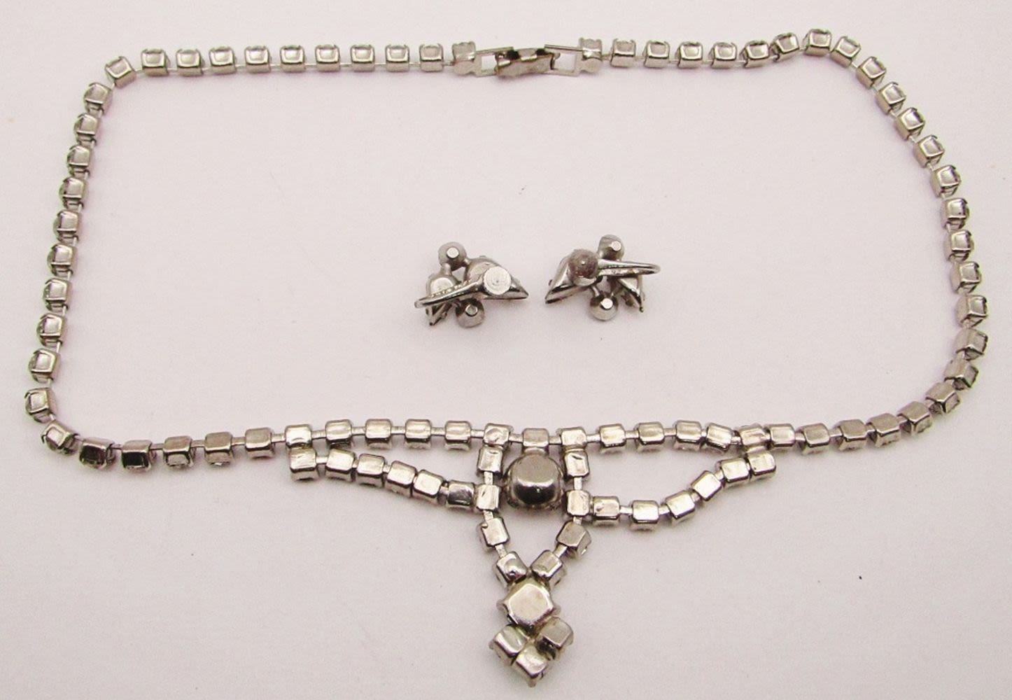 WITH MATCHING PAIR OF TWIST BACK EARRINGS-NECKLACE MEASURES 15 INCHES