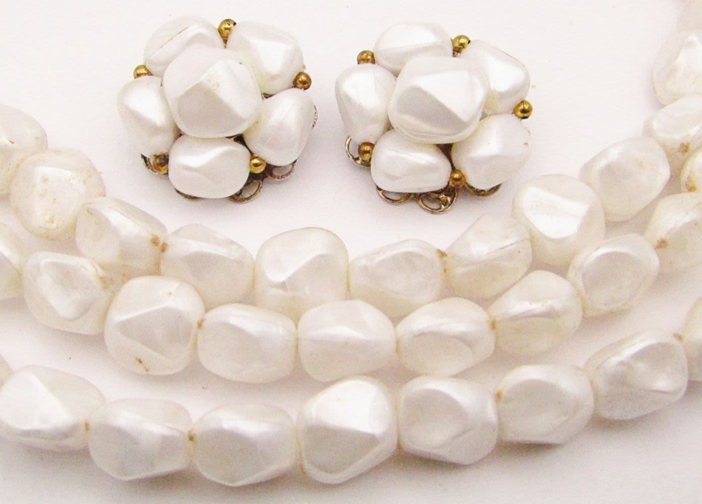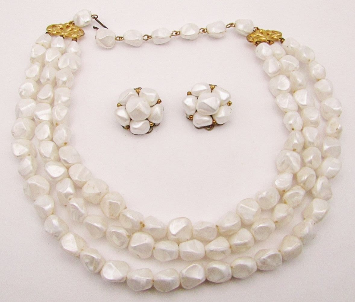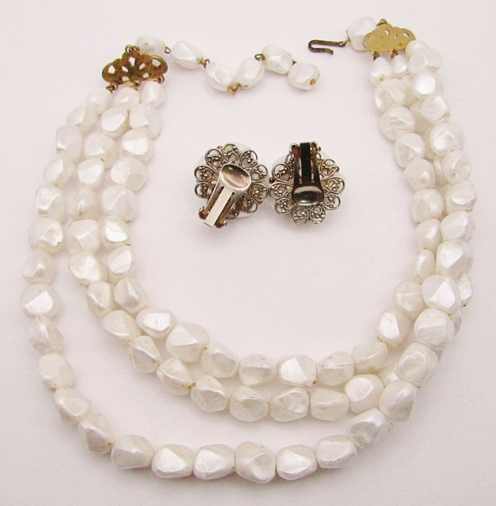 BEADED NECKLACE WITH MATCHING PAIR OF CLIP ON EARRINGS-NECKLACE MEASURES 16 INCHES