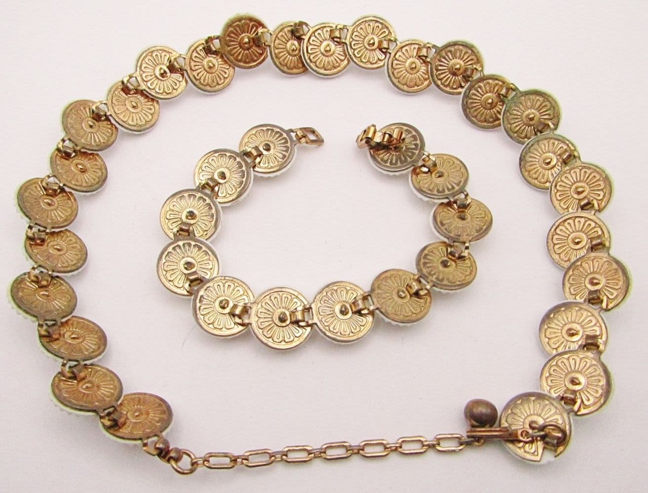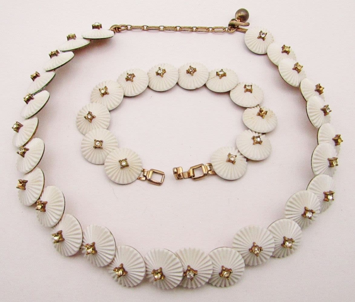 WITH WHITE LUCITE ACCENTS WITH MATCHING BRACELET-NECKLACE MEASURES 16 INCHES 7 & BRACELET MEASURES 7.5 INCHES
