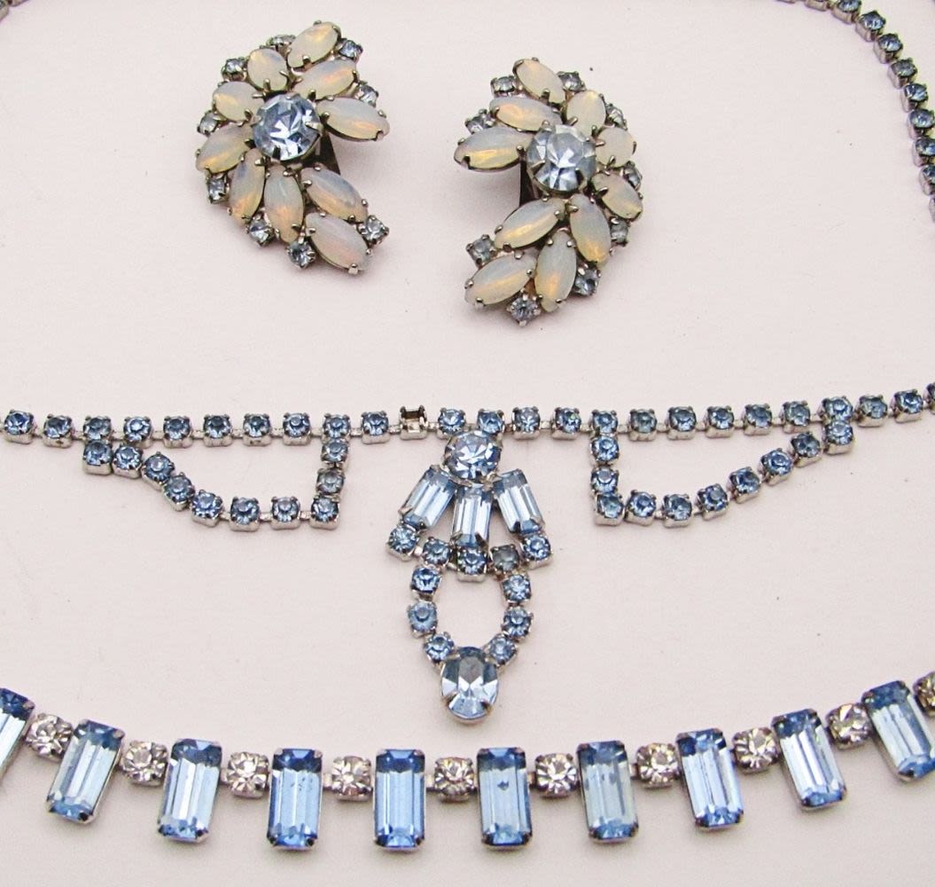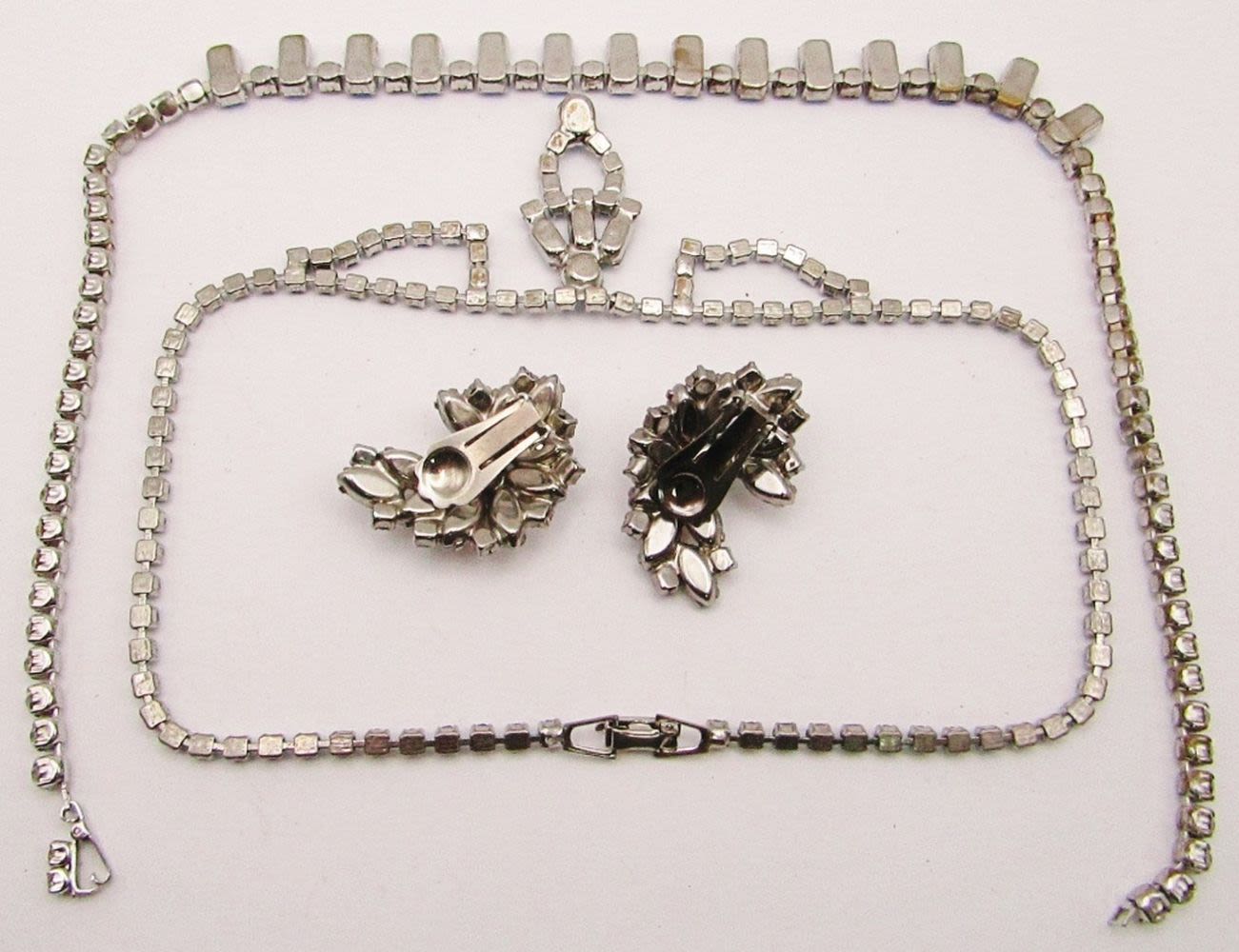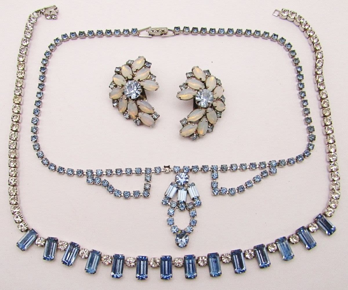 JEWELRY LOT: (2)NECKLACES & (1)PAIR OF CLIP ON EARRINGS WITH METALLIC/TRANSLUCENT ACCENTS