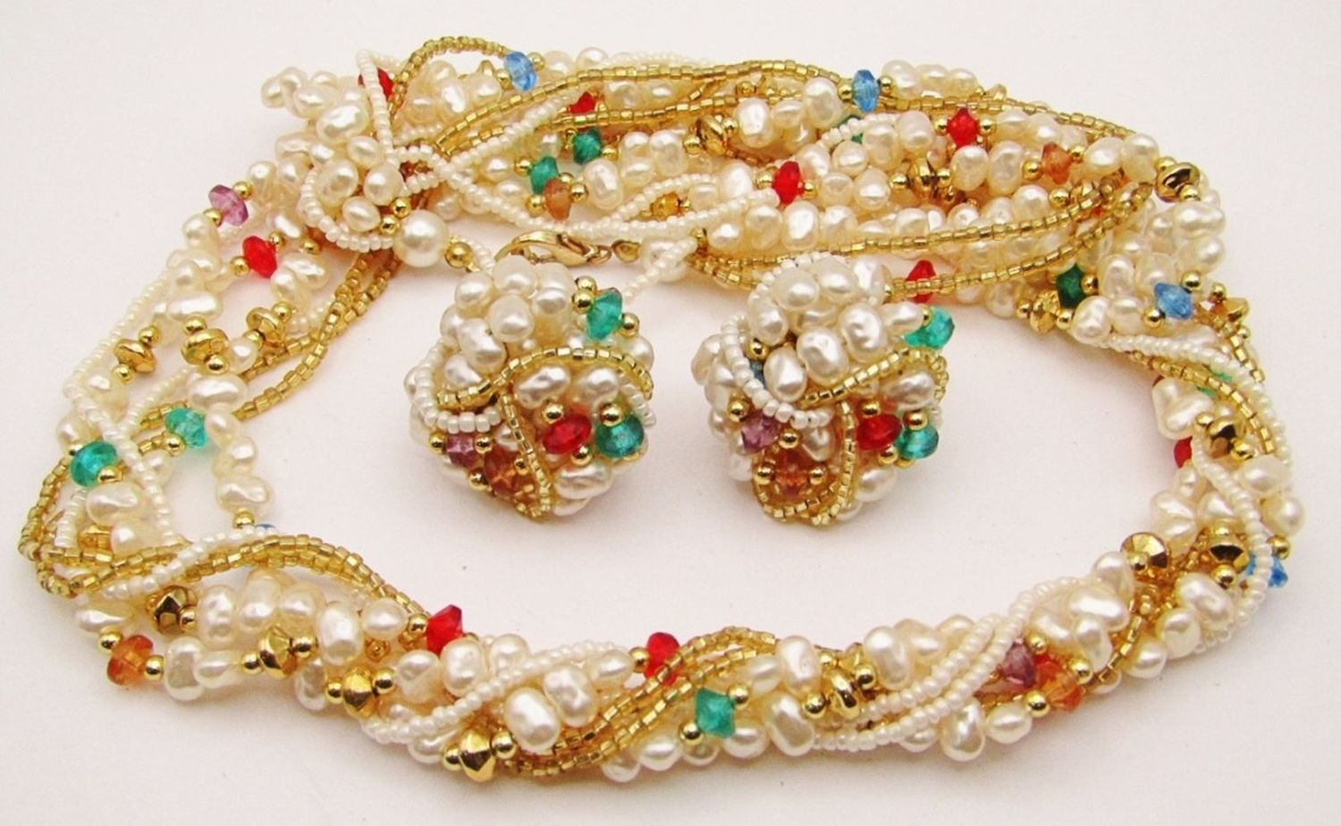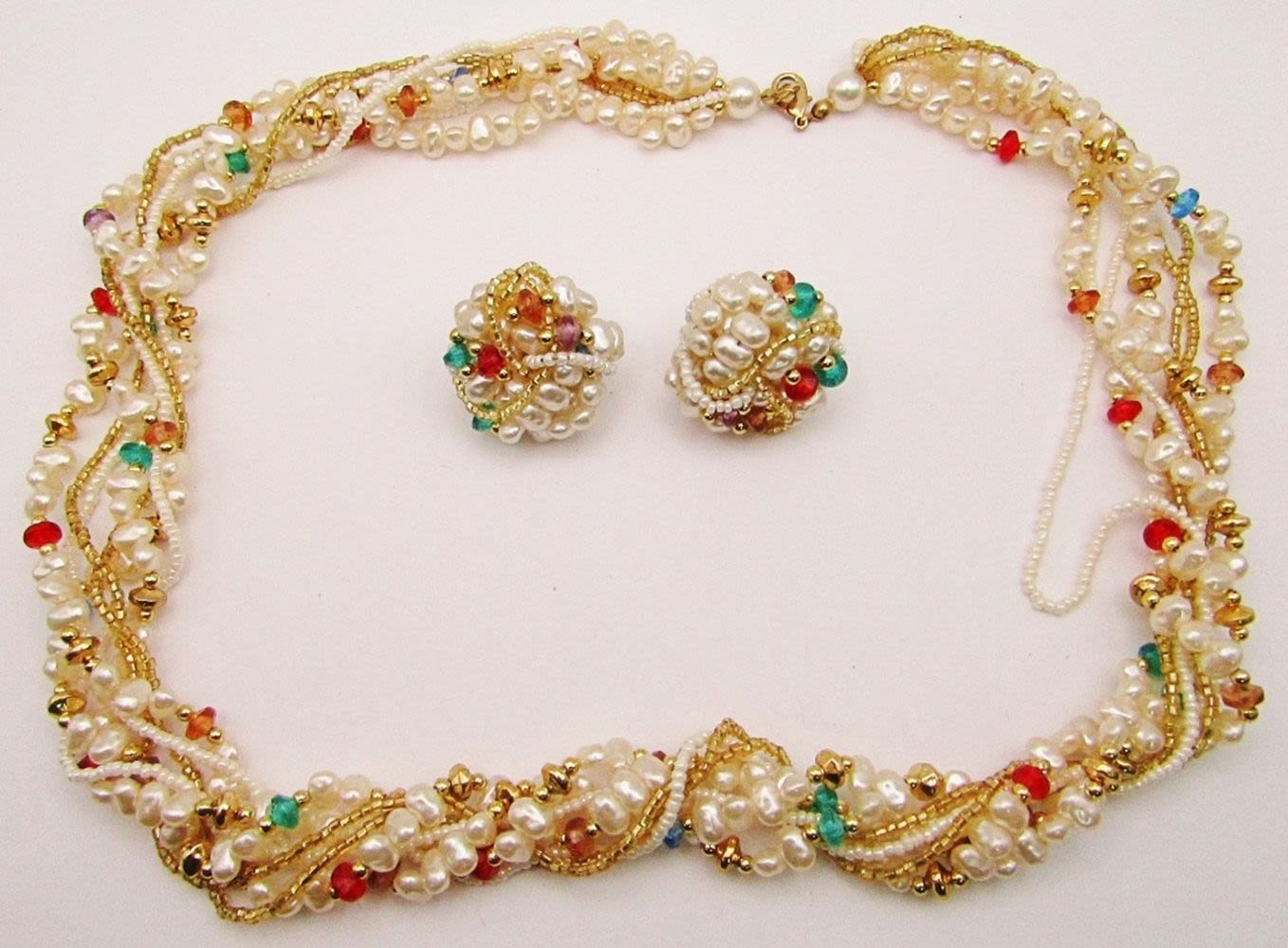 NECKALCE WITH MULTI COLORED BEAD ACCENTS WITH MATCHING PAIR OF PIERCED EARRINGS-NECKLACE MEASRUES 26 INCHES