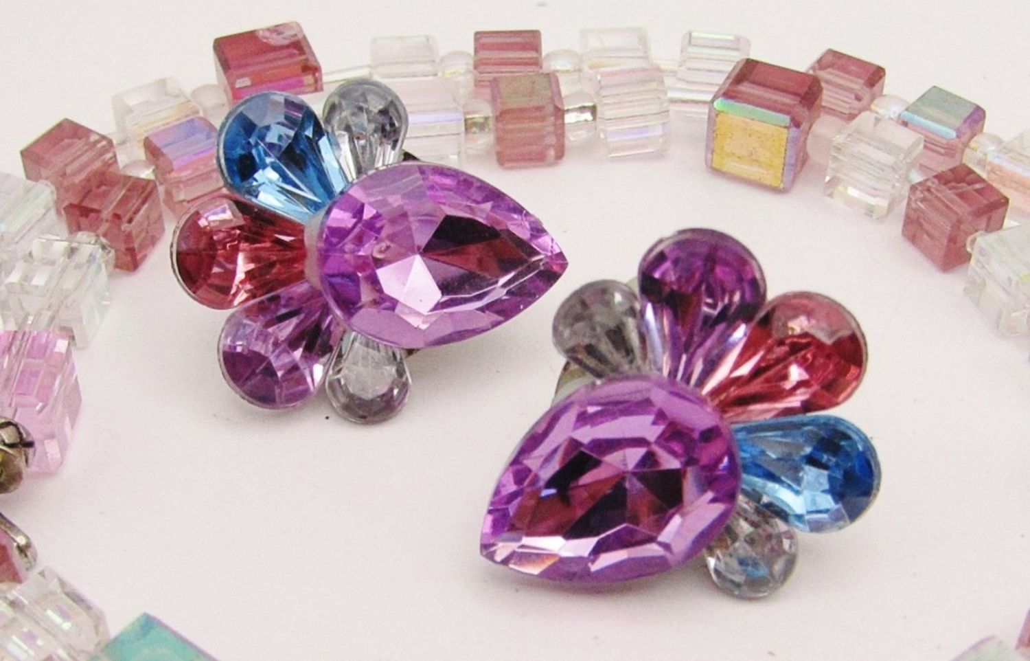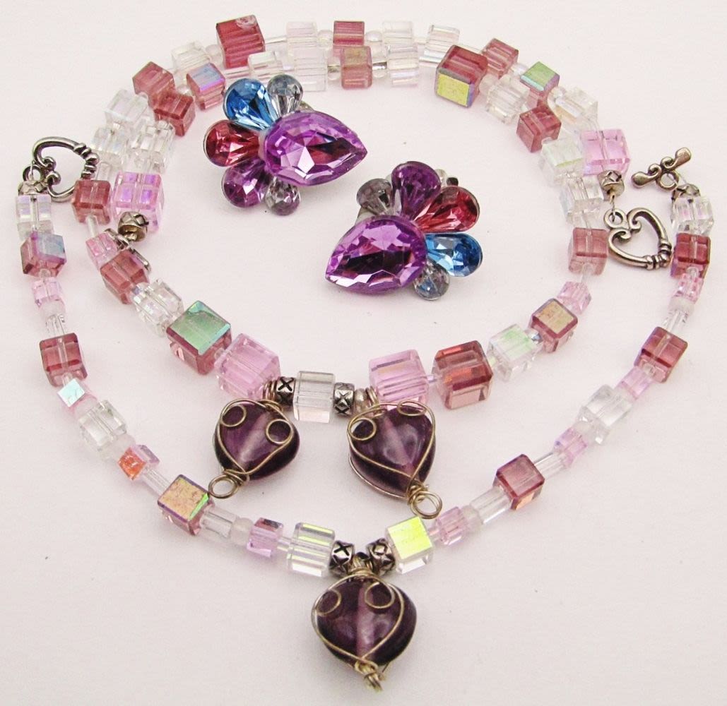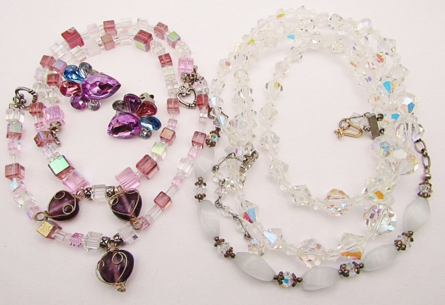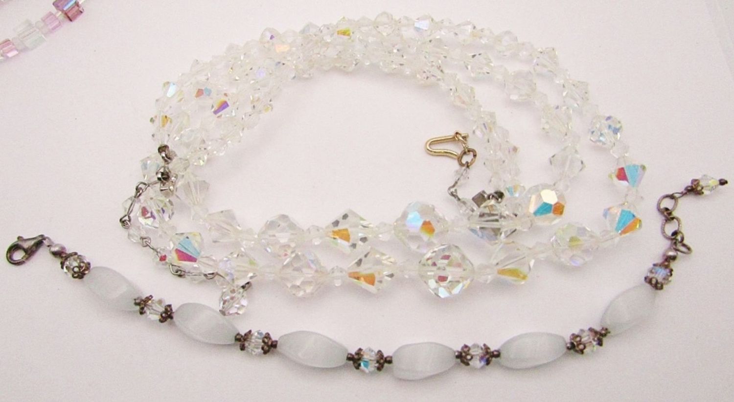 (2)BRACELETS & (1)BONUS PAIR OF RHINESTONE PIERCED EARRINGS-NECKLACES VARIOUS LENGTHS/DESIGNS