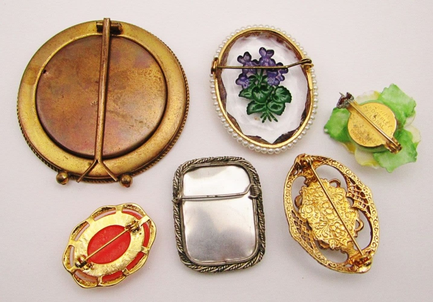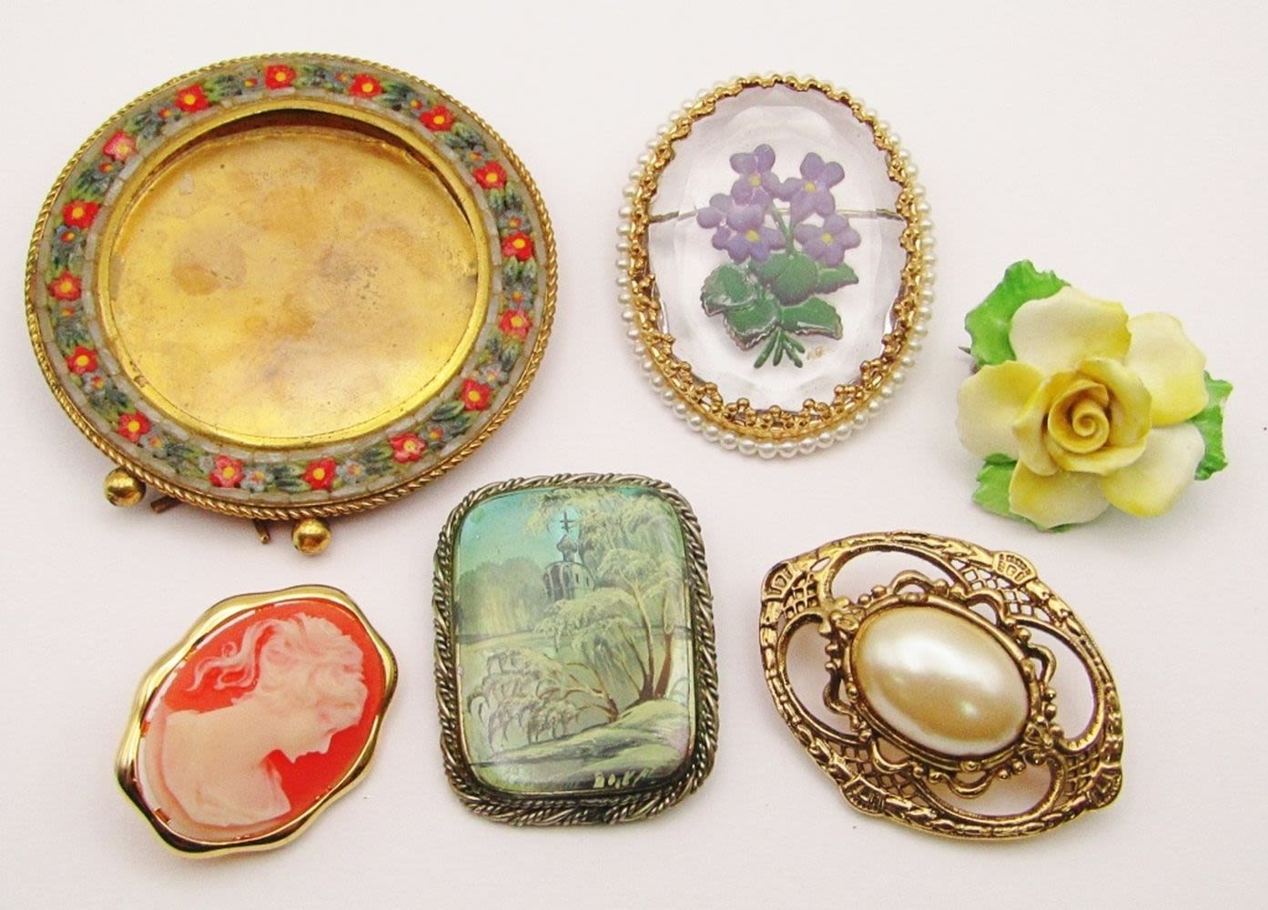ADDERLEY FLORAL-MICRO MOSAIC-DENTON BONE- CAMEO-FAUX PEARLS-LUCITE