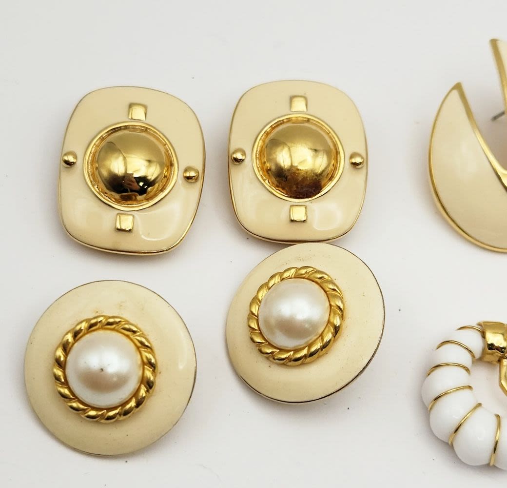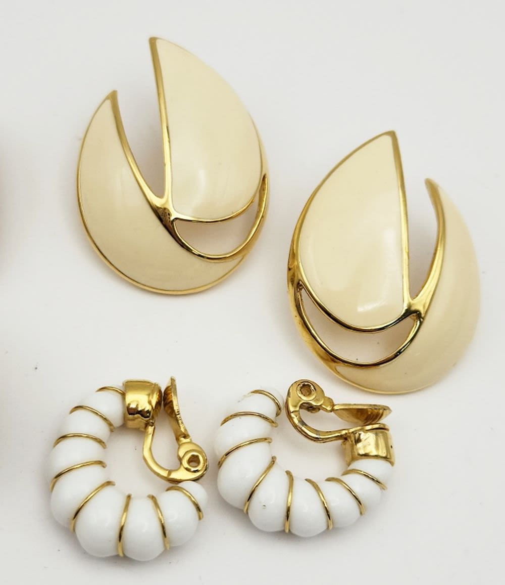 CRÈME ENAMEL-FAUX PEARL-WHITE LUCITE-TRIFAIRI-MONET-GJD