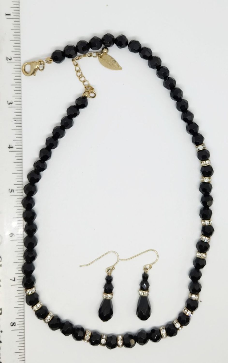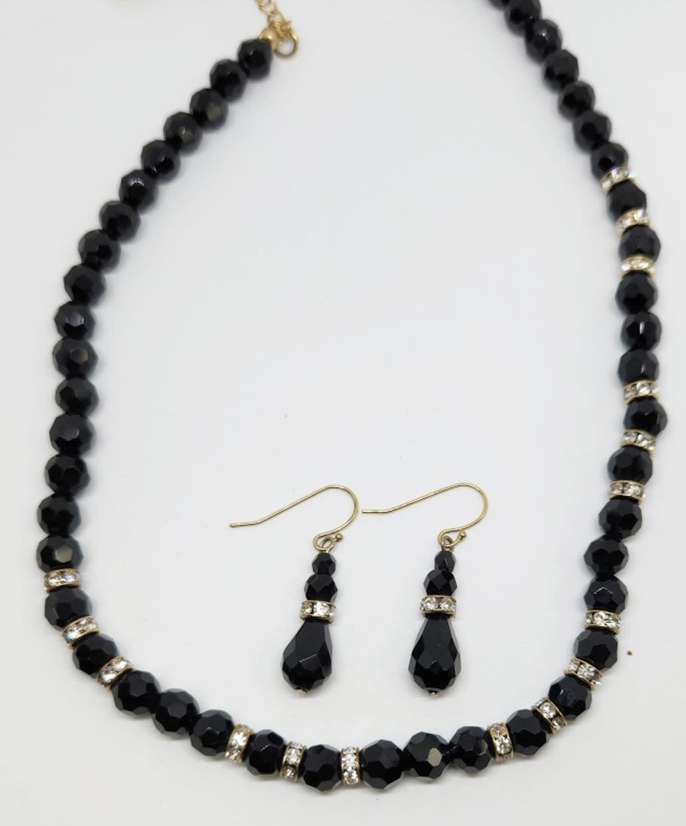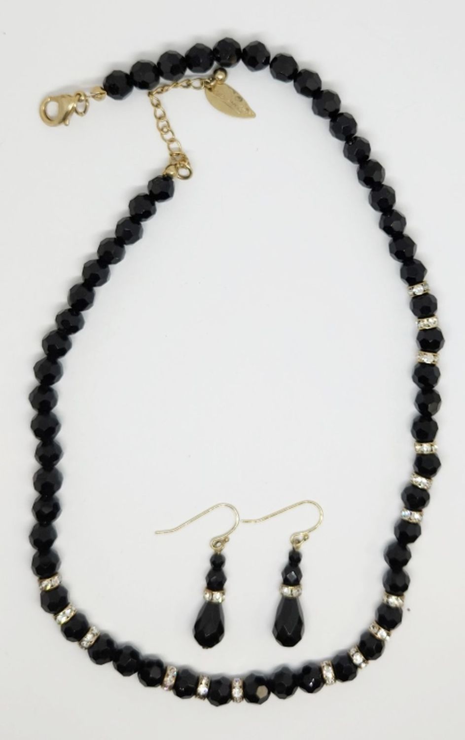 RHINESTONE NECKLACE WITH MATCHING PAIR OF PIERCED DANGLY EARRINGS-NECKLACE MEASURES 21 INCHES