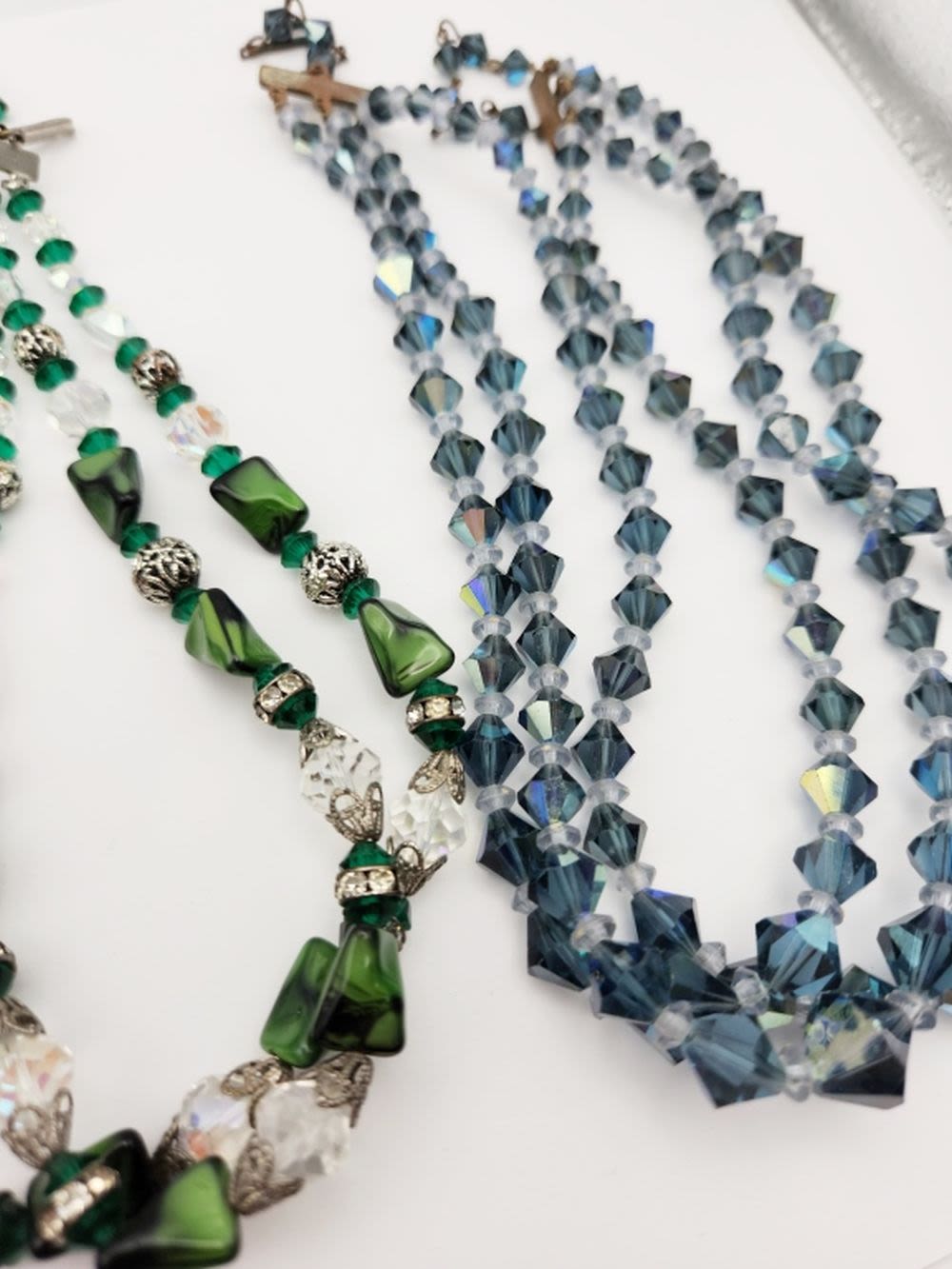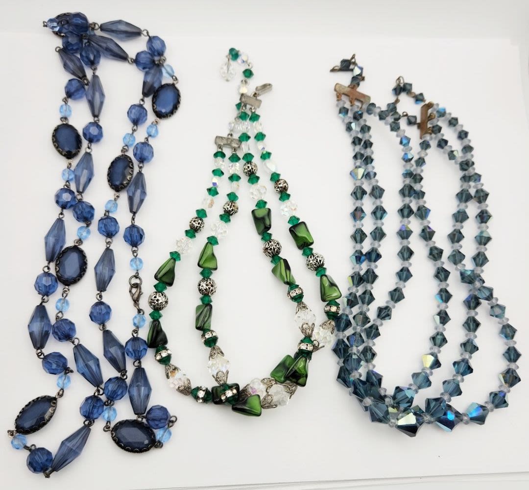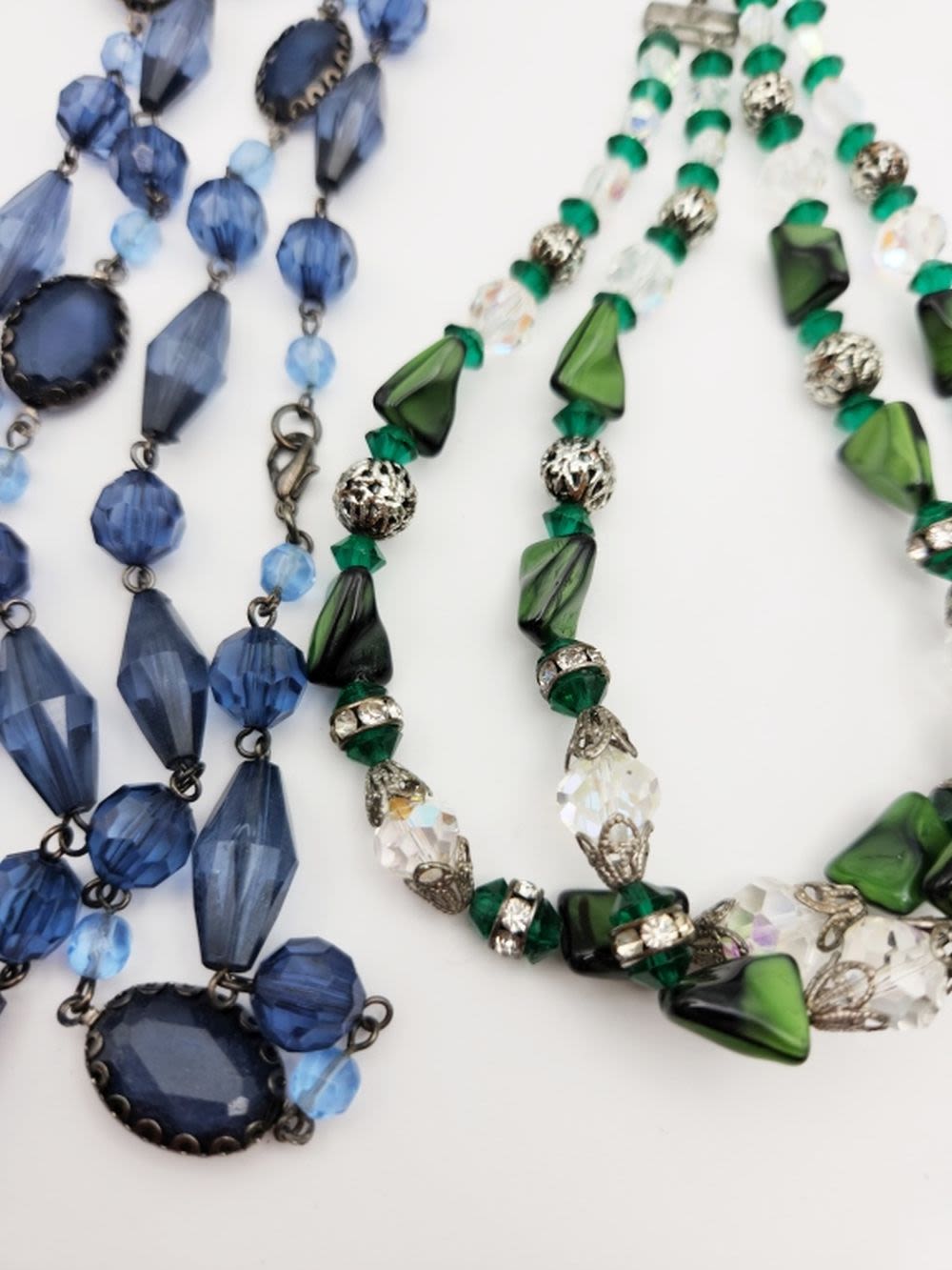 GREEN AND NAVY BLUE BEADS-DIFF LENGTHS/DESIGNS