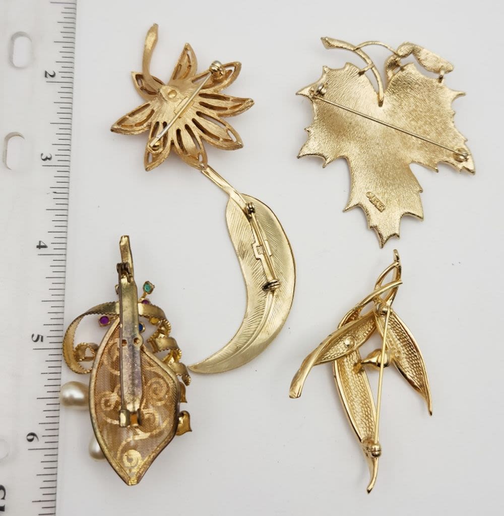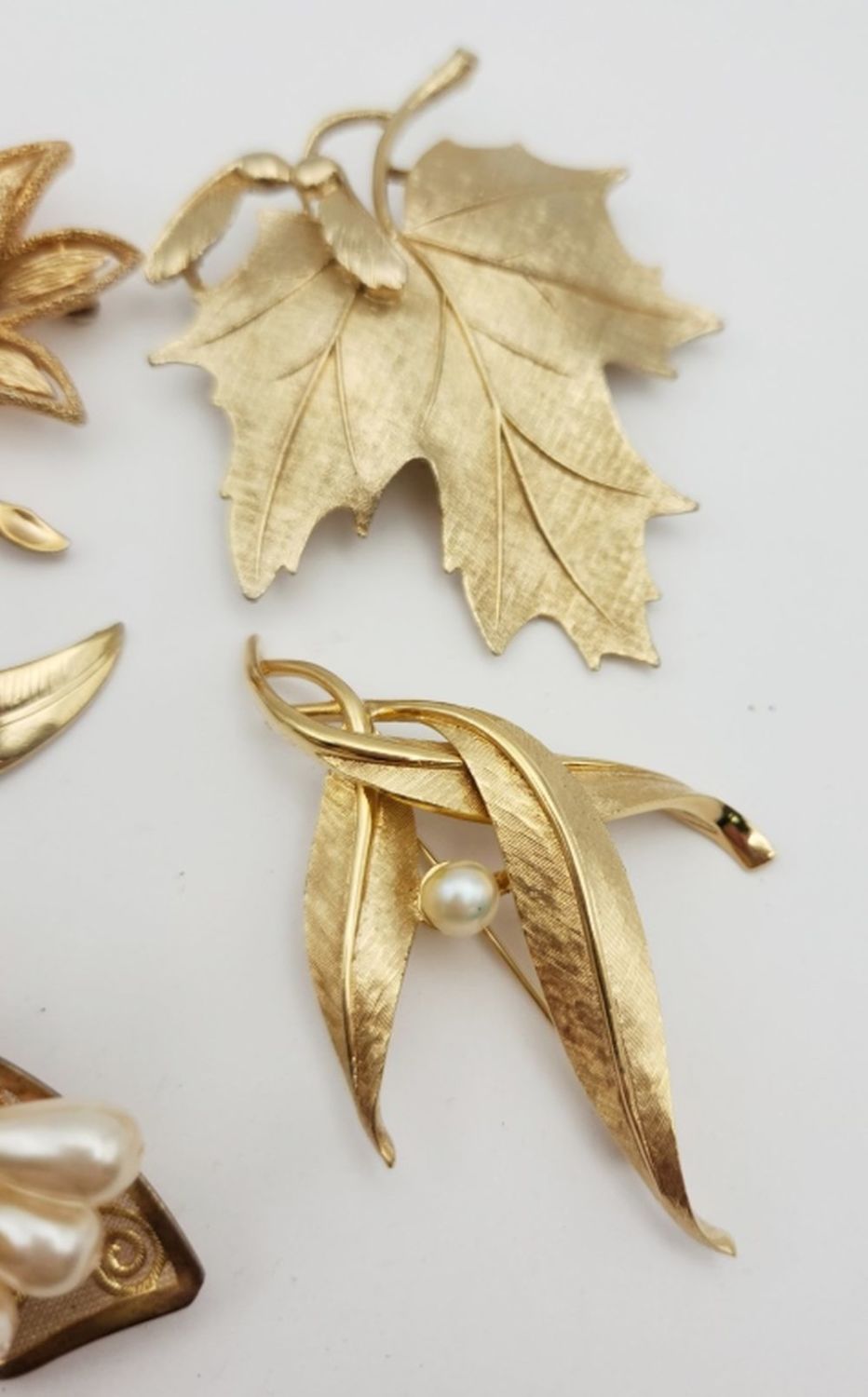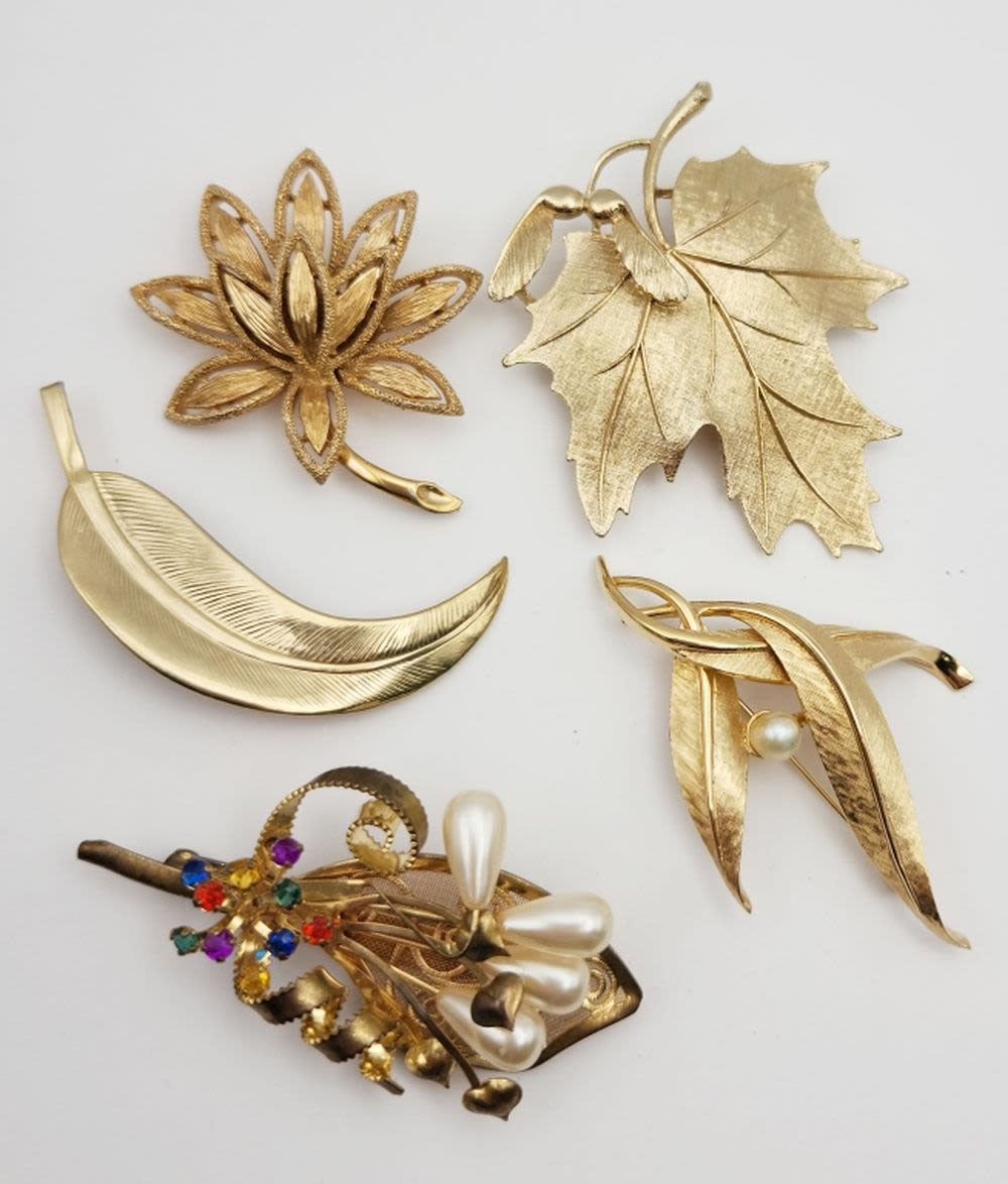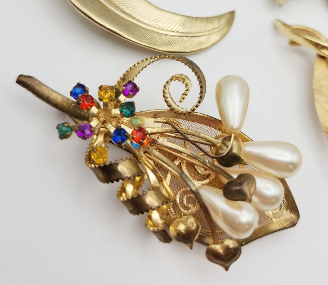 AVON-LUCITE-FAUX PEARLS-RHINESTONES-LEAF DESIGNS