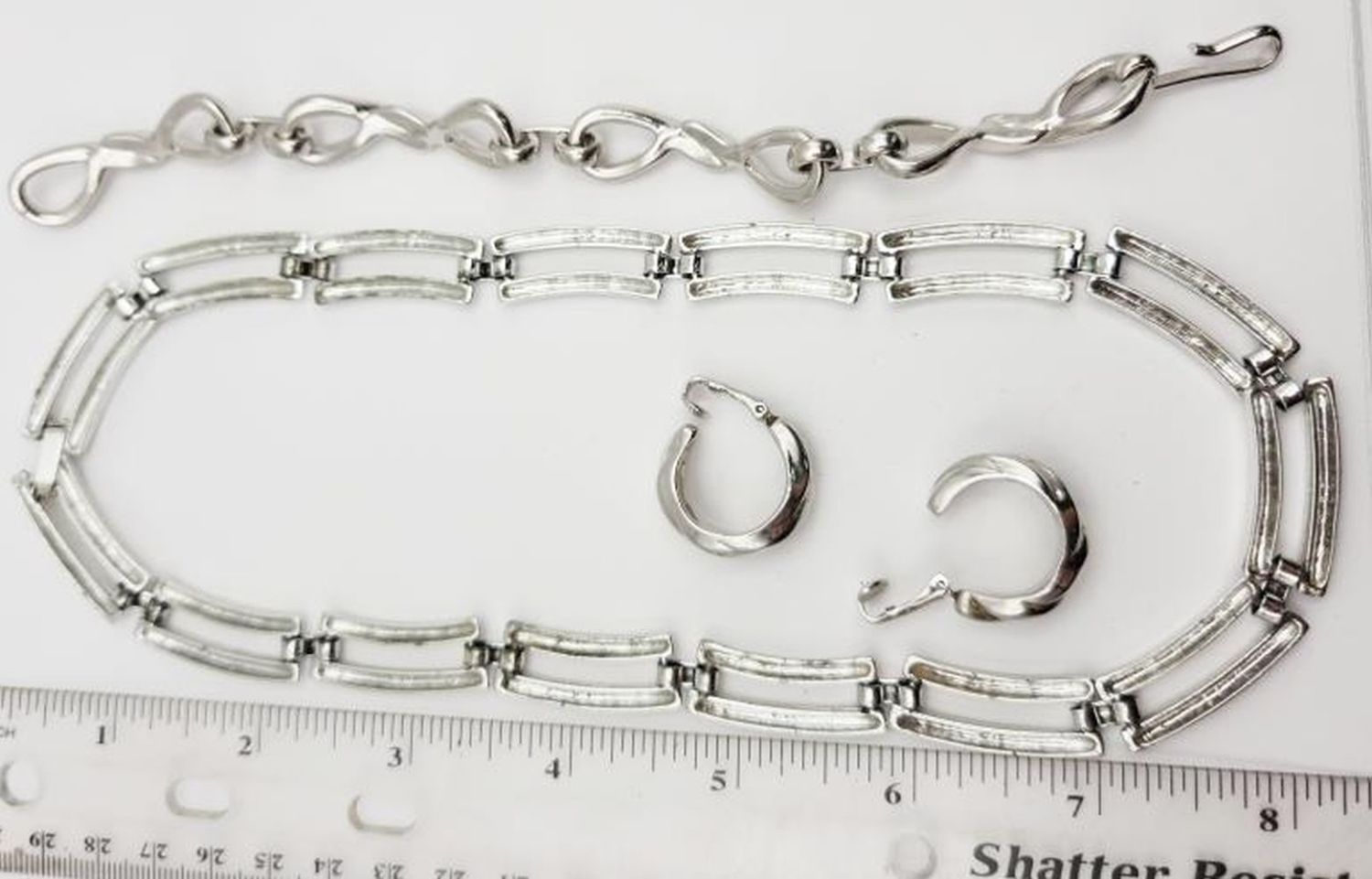 ON HOOP EARRINGS (1)7.5 INCH FASHION BRACELET & (1)19 INCH PANEL NECKLACE