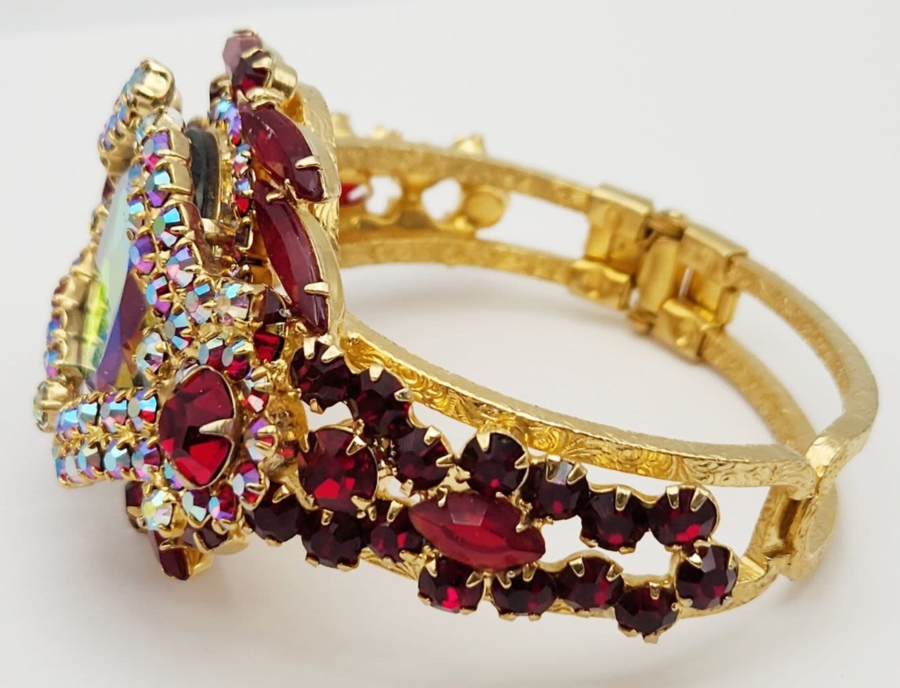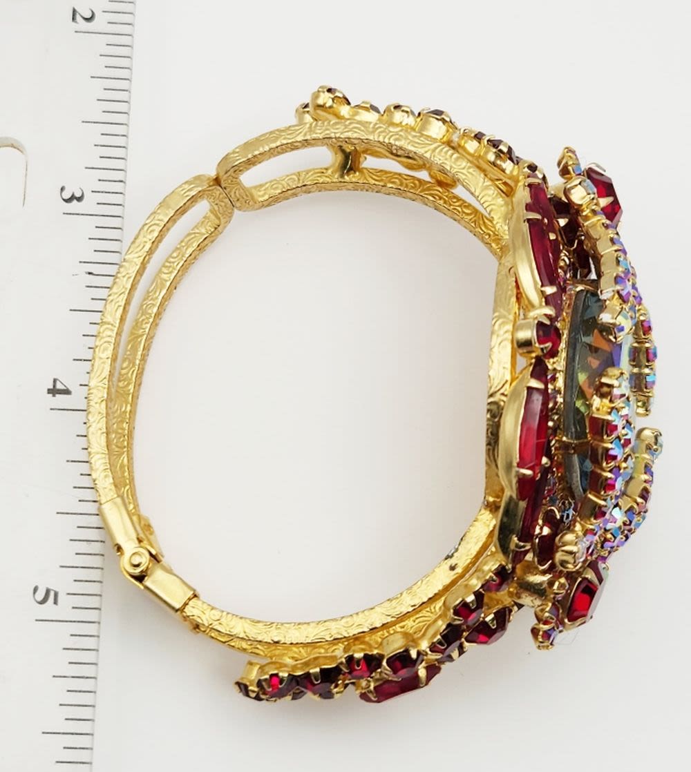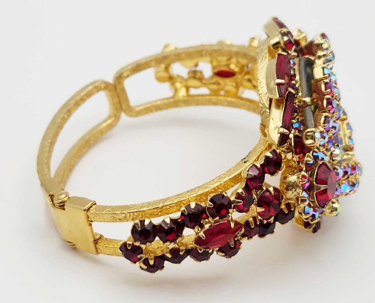 D & E JULIANA GOLD TONED HINGED RUBY RED RHINESTONE