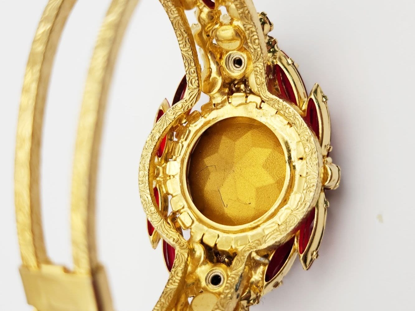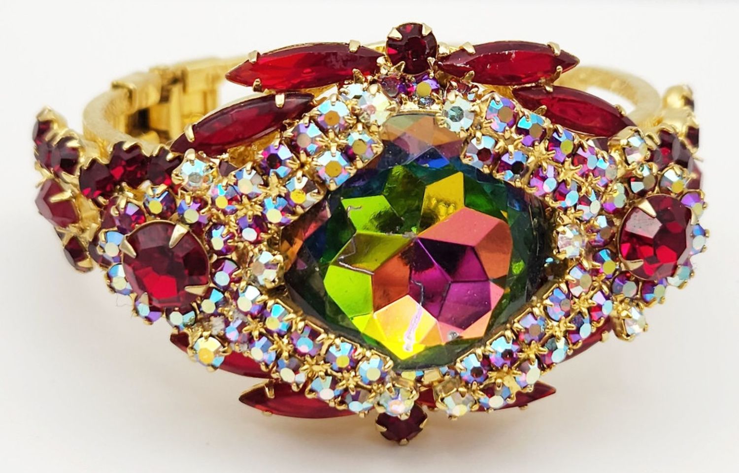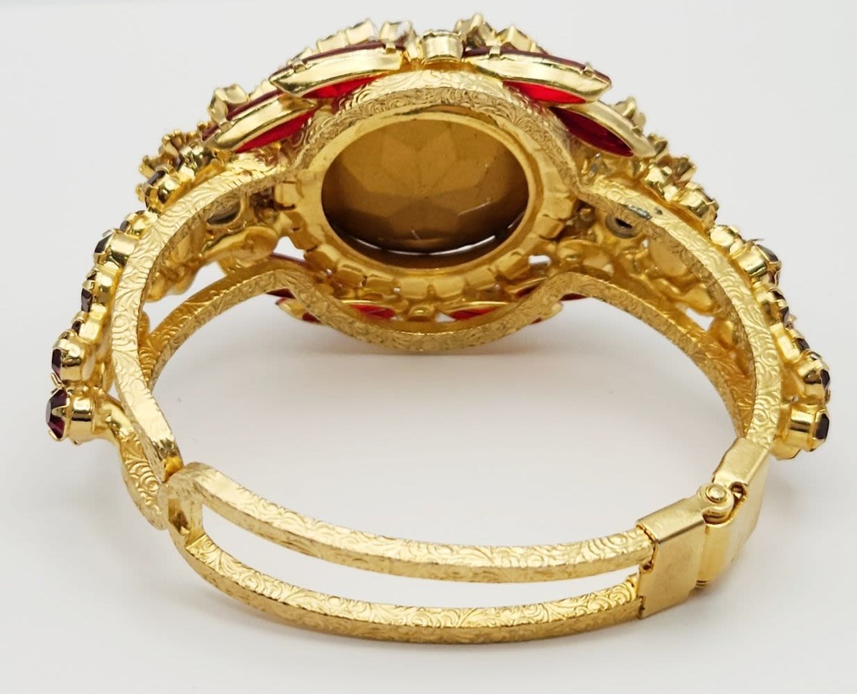 D & E JULIANA GOLD TONED HINGED RUBY RED RHINESTONE