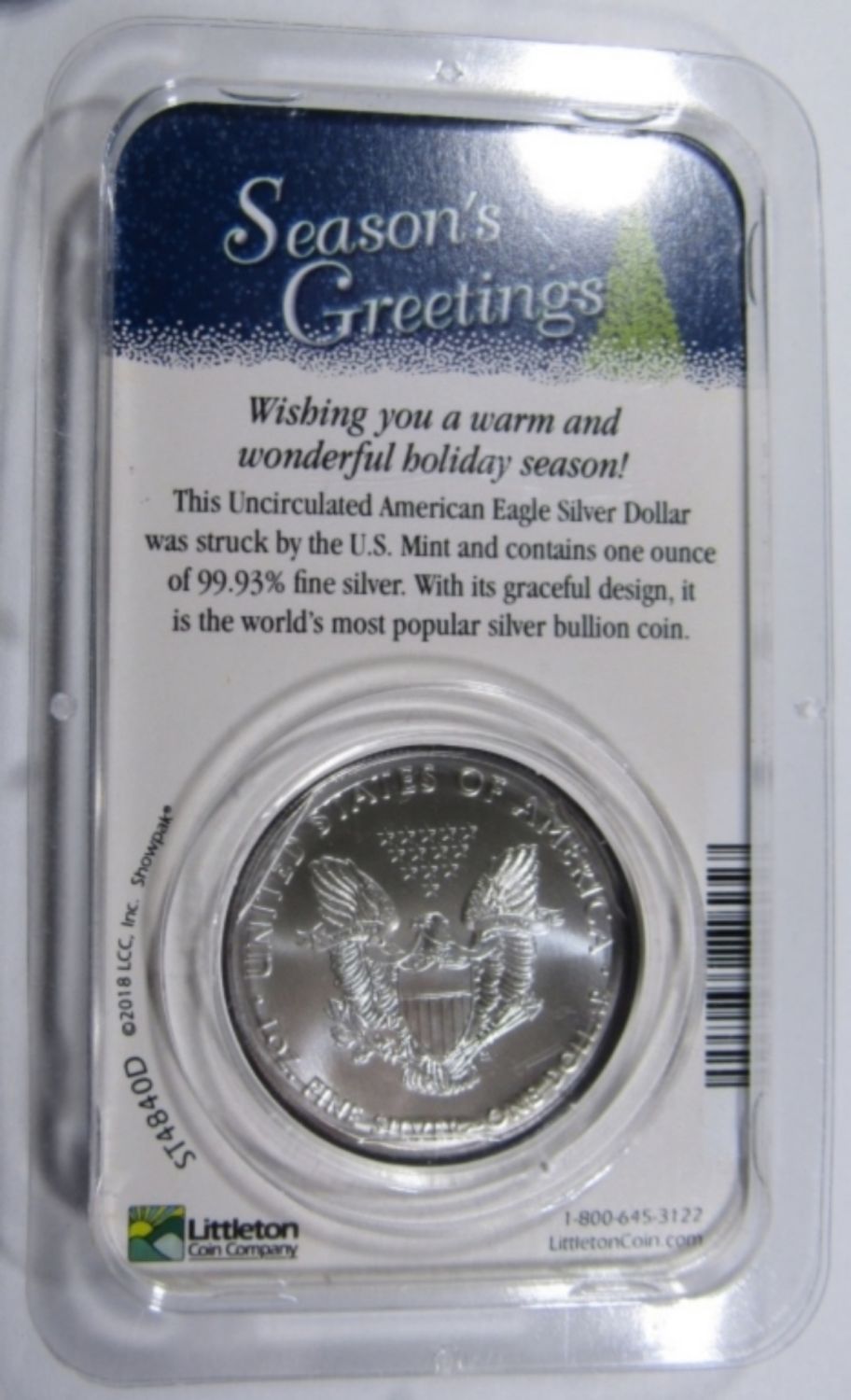 AMERICAN SILVER EAGLE 1ozt .999 PURE SILVER “SEASON’S GREETINGS” DESIGN