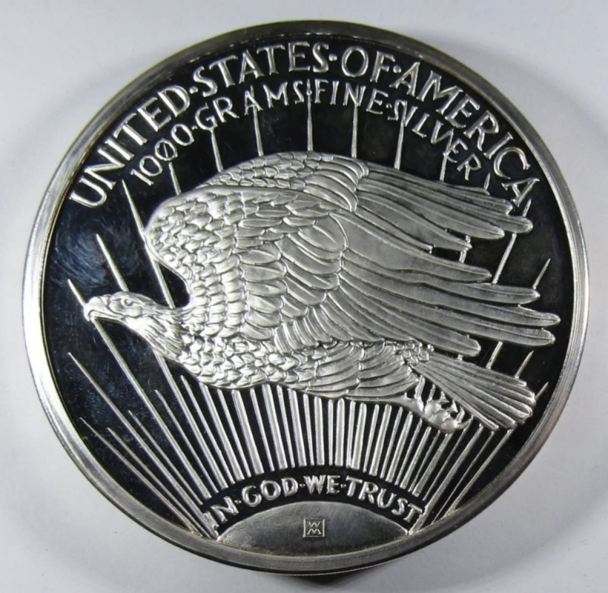 1000 GRAMS .999 SILVER PROOF REPLICA OF 1994 SILVER EAGLE, IN VELVET BOX WITH COA. WASHINGTON MINT.