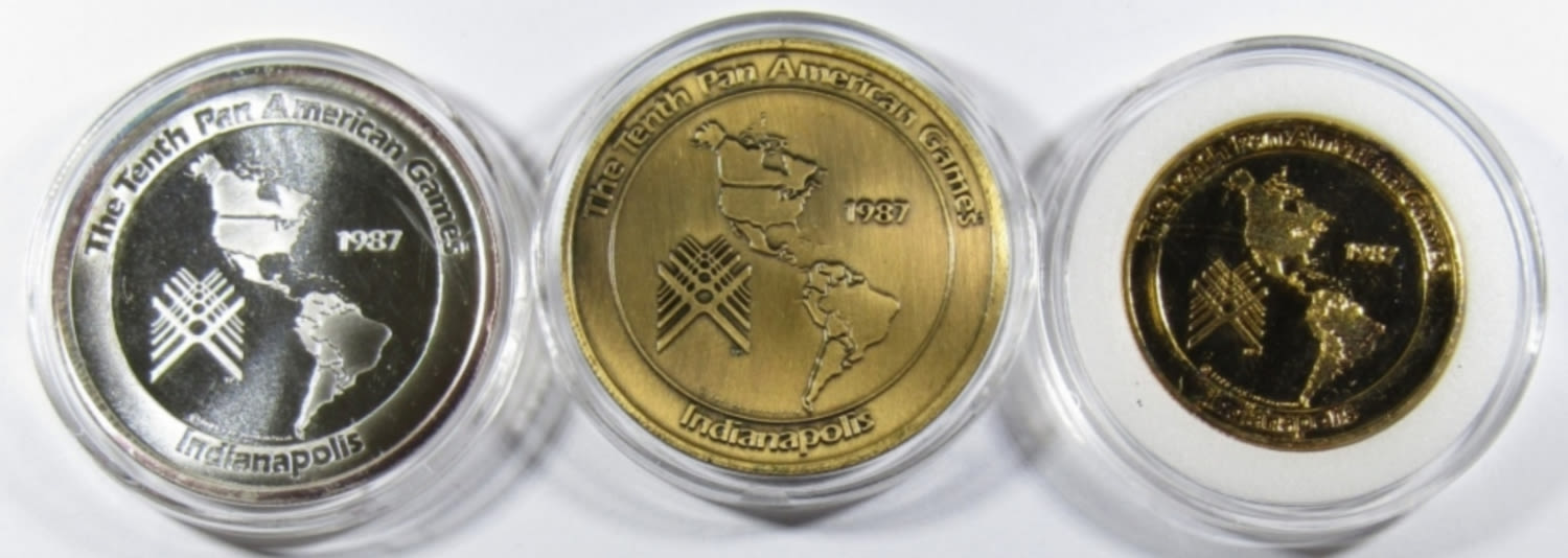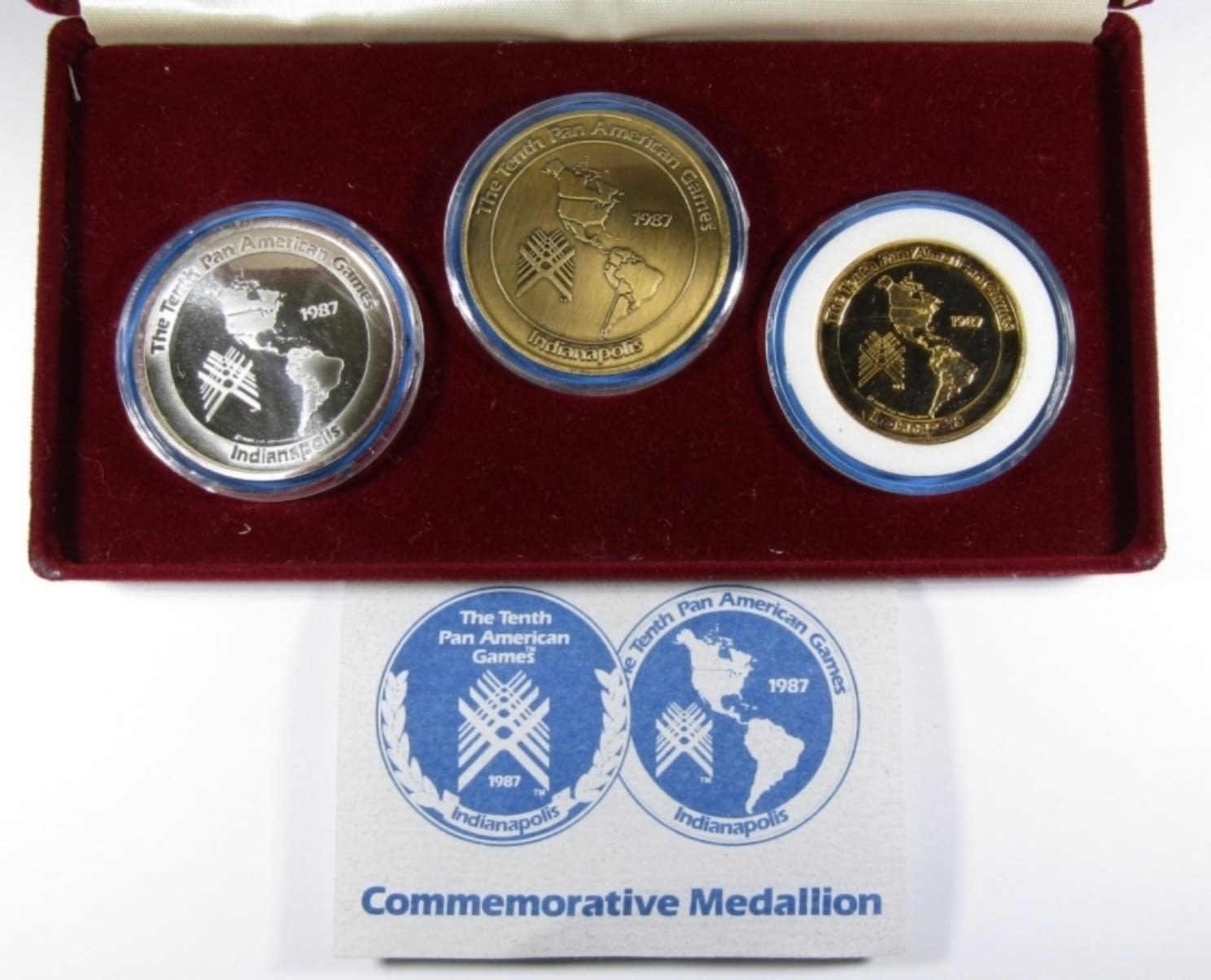 Official Medallion of the Tenth Pan Am Games 1987, One is 1ozt .999 Fine Silver. Made by SilverTowne