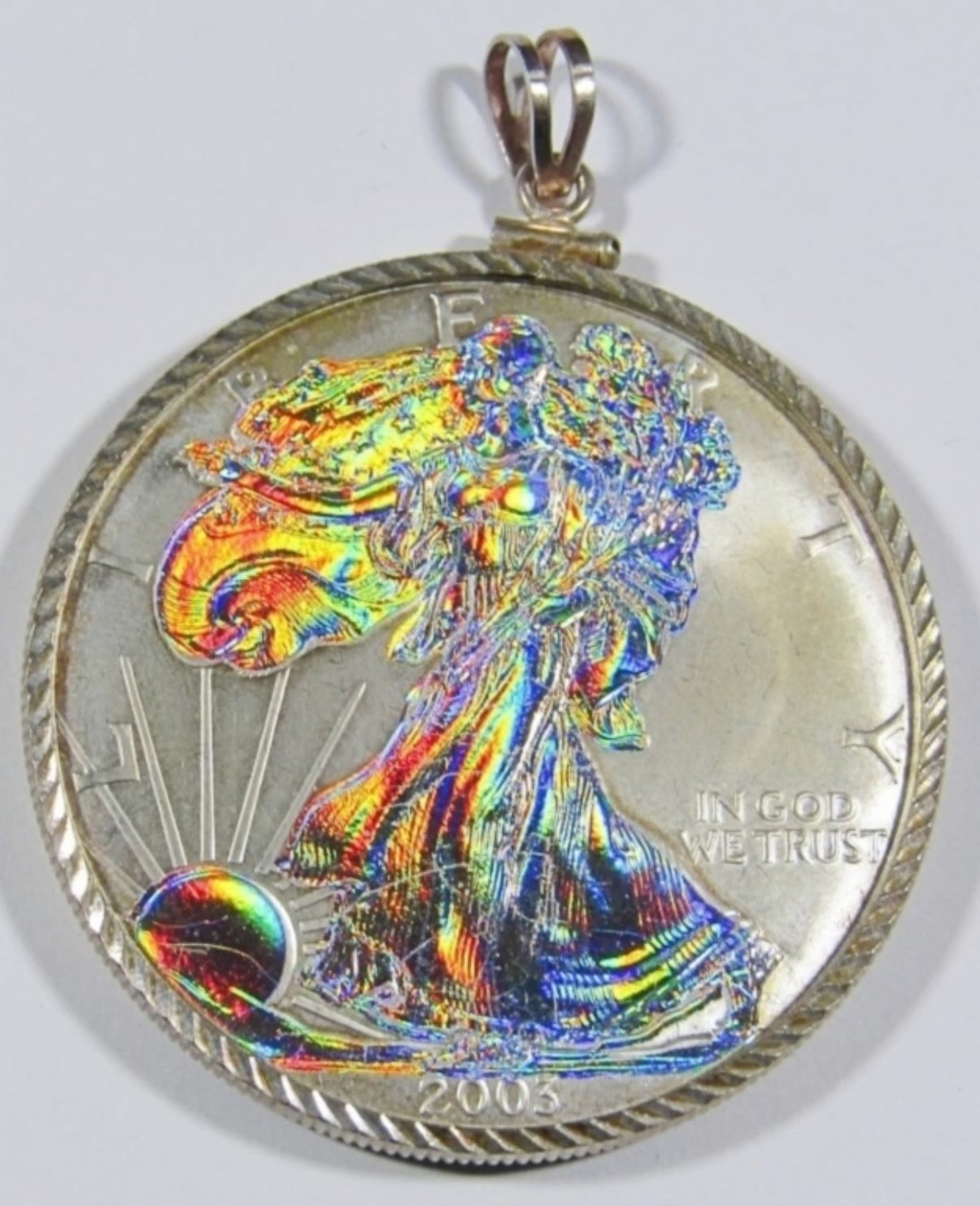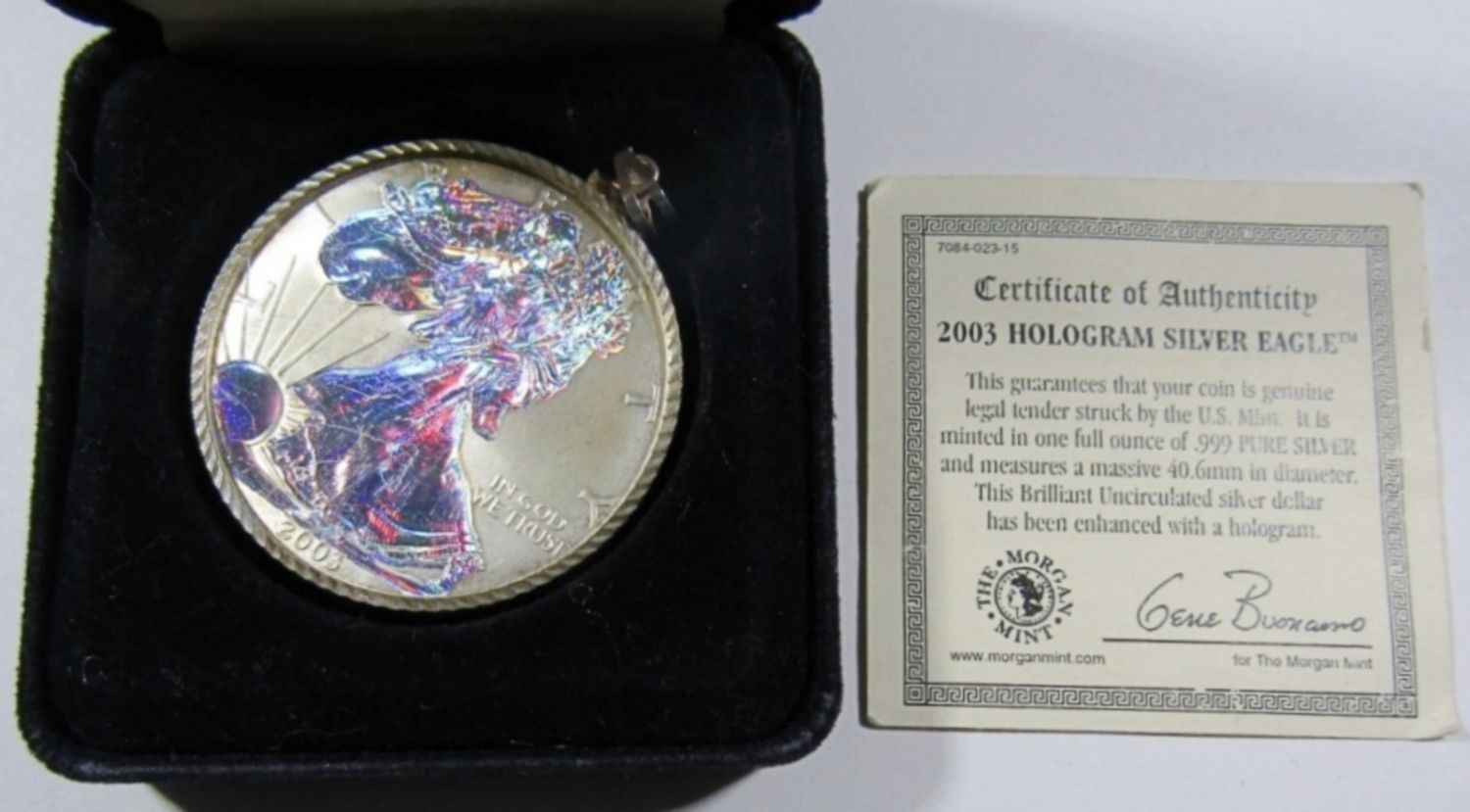 2003 BU AMERICAN SILVER EAGLE, ENHANCED WITH A HOLOGRAM, IN VELVET BOX WITH COA