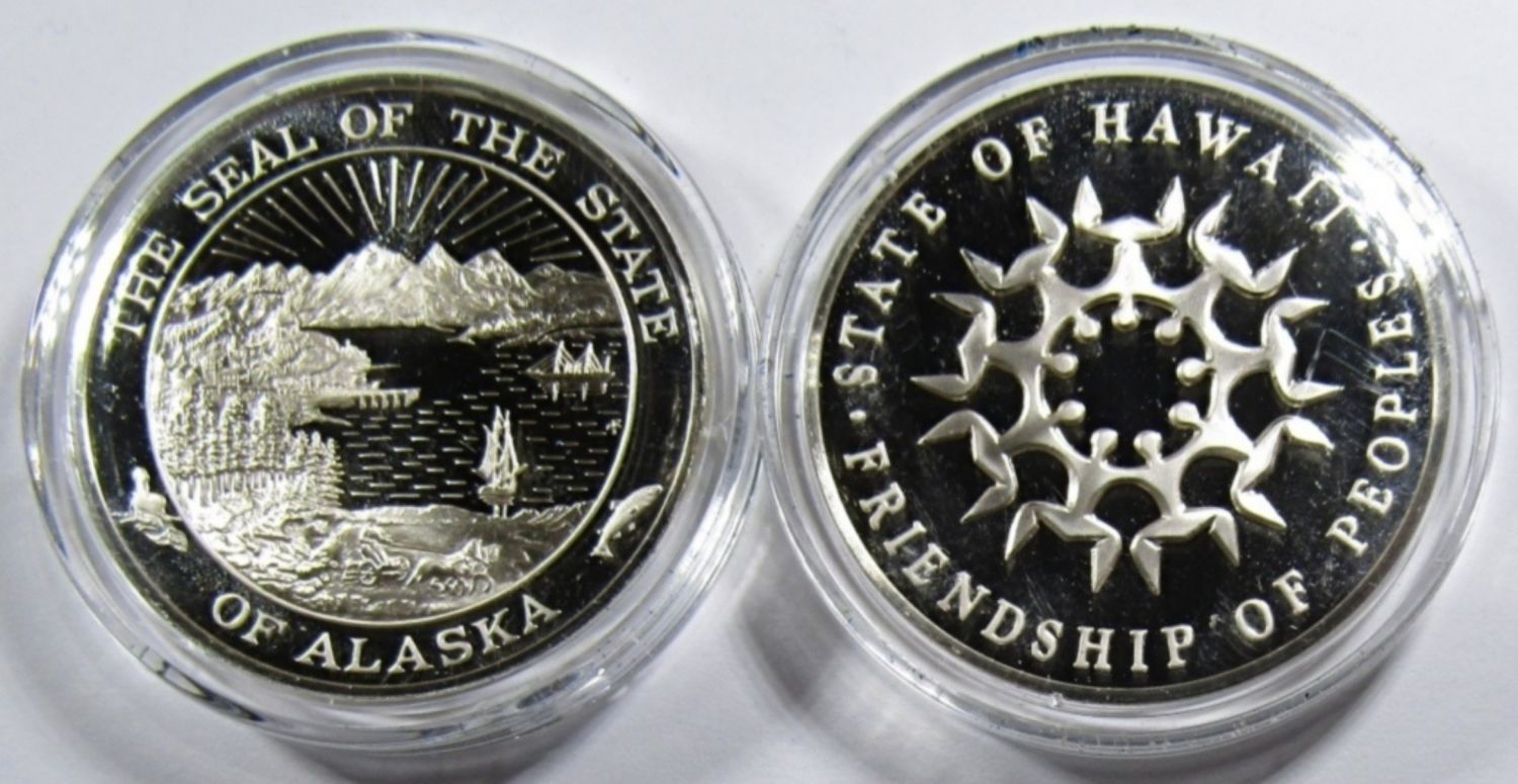 (2) 21 DWT .925 STERLING SILVER PROOF COMMEMORATIVE ROUNDS