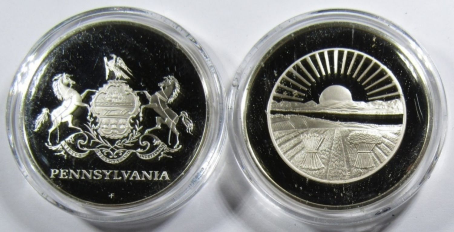 (2) 21 DWT .925 STERLING SILVER PROOF COMMEMORATIVE ROUNDS