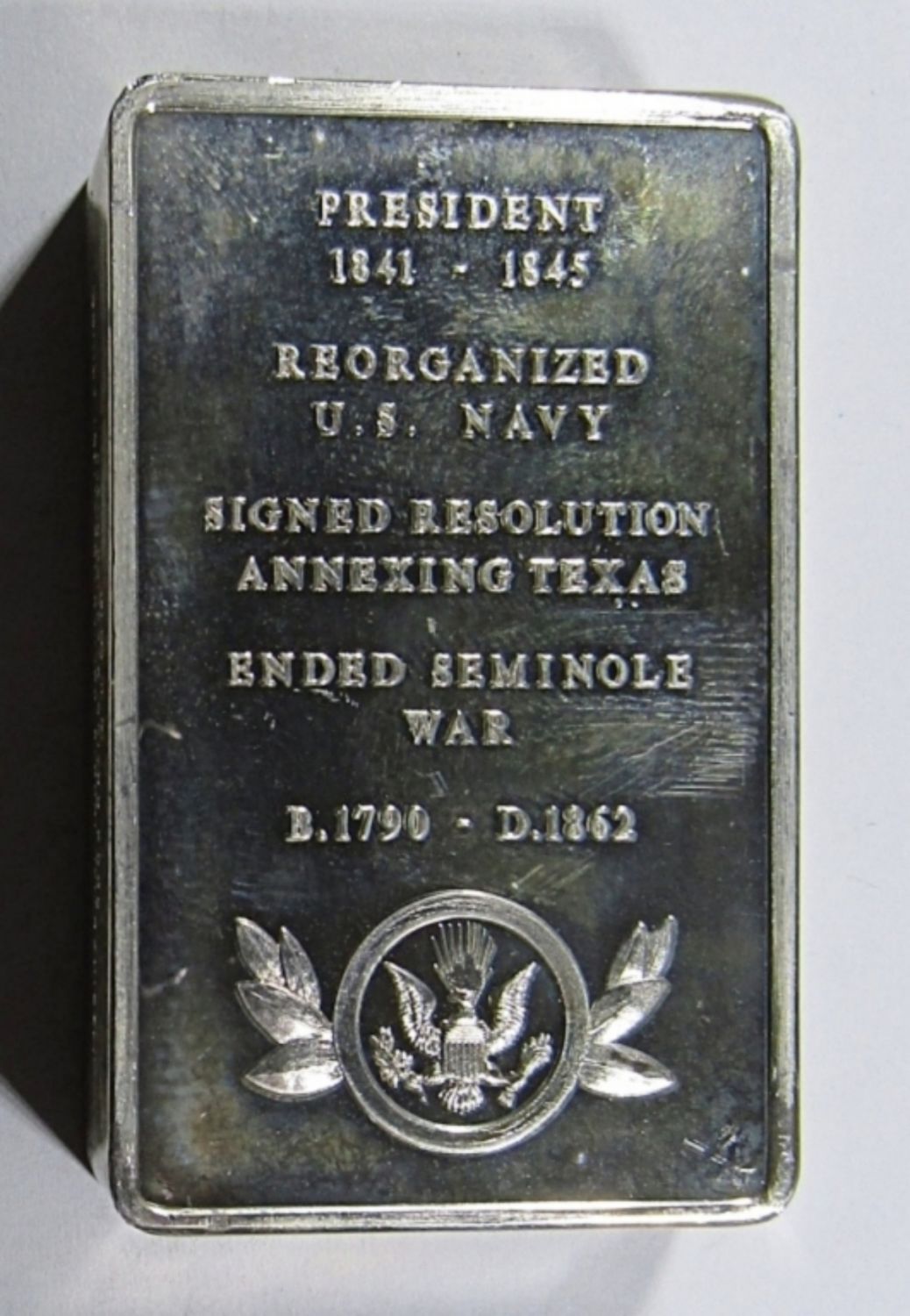 5000 GRAINS STERLING SILVER, PRESIDENTIAL INGOTS COLLECTION- FIRST EDITION. APROX 10.4 ozt (208 dwt)