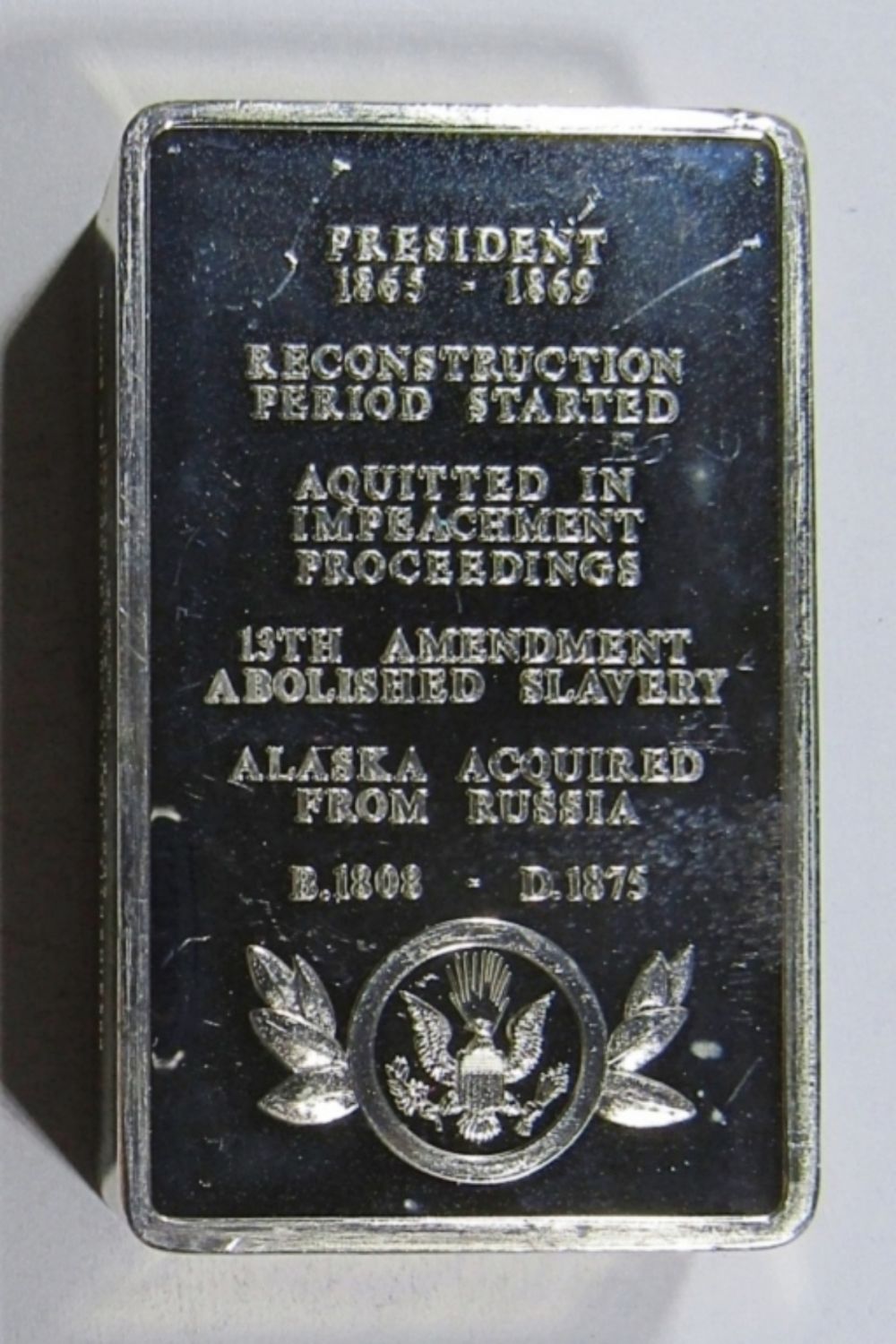 5000 GRAINS STERLING SILVER, PRESIDENTIAL INGOTS COLLECTION- FIRST EDITION. APROX 10.4 ozt (208 dwt)
