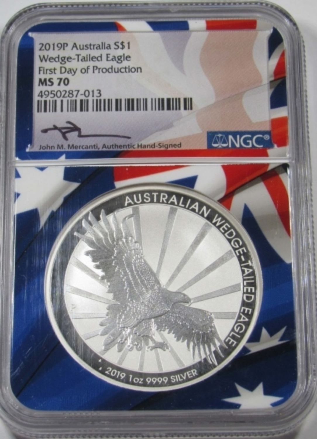AUSTRALIA 1oz SILVER, FIRST DAY OF PRODUCTION, JOHN MERCANTI SIGNED.