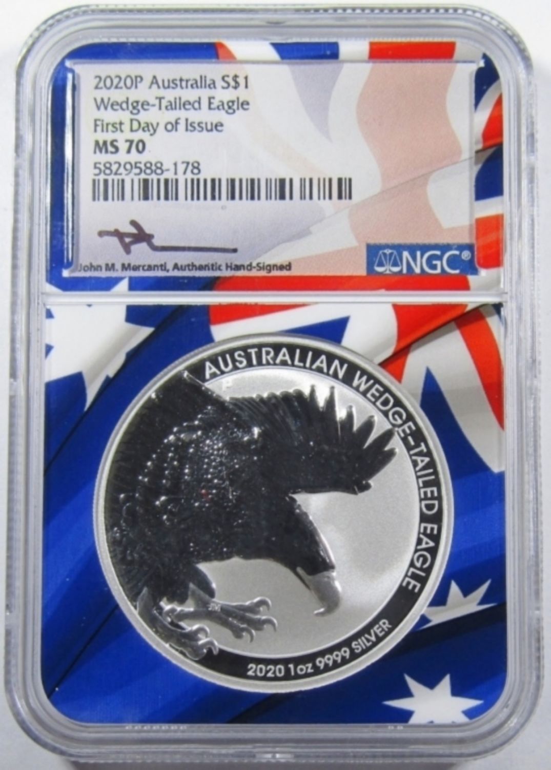 FIRST DAY OF ISSUE, JOHN MERCANTI SIGNED, AUSTRALIA 1oz .999 SILVER