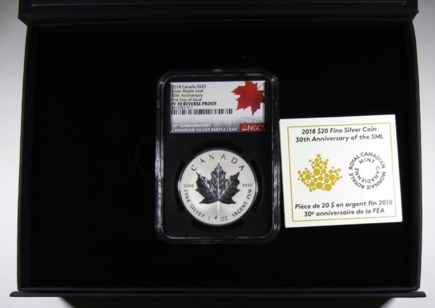 REVERSE PROOF 1oz SILVER COIN, FIRST DAY OF ISSUE, 30TH ANNIVERSARY, WITH BOX AND COA.