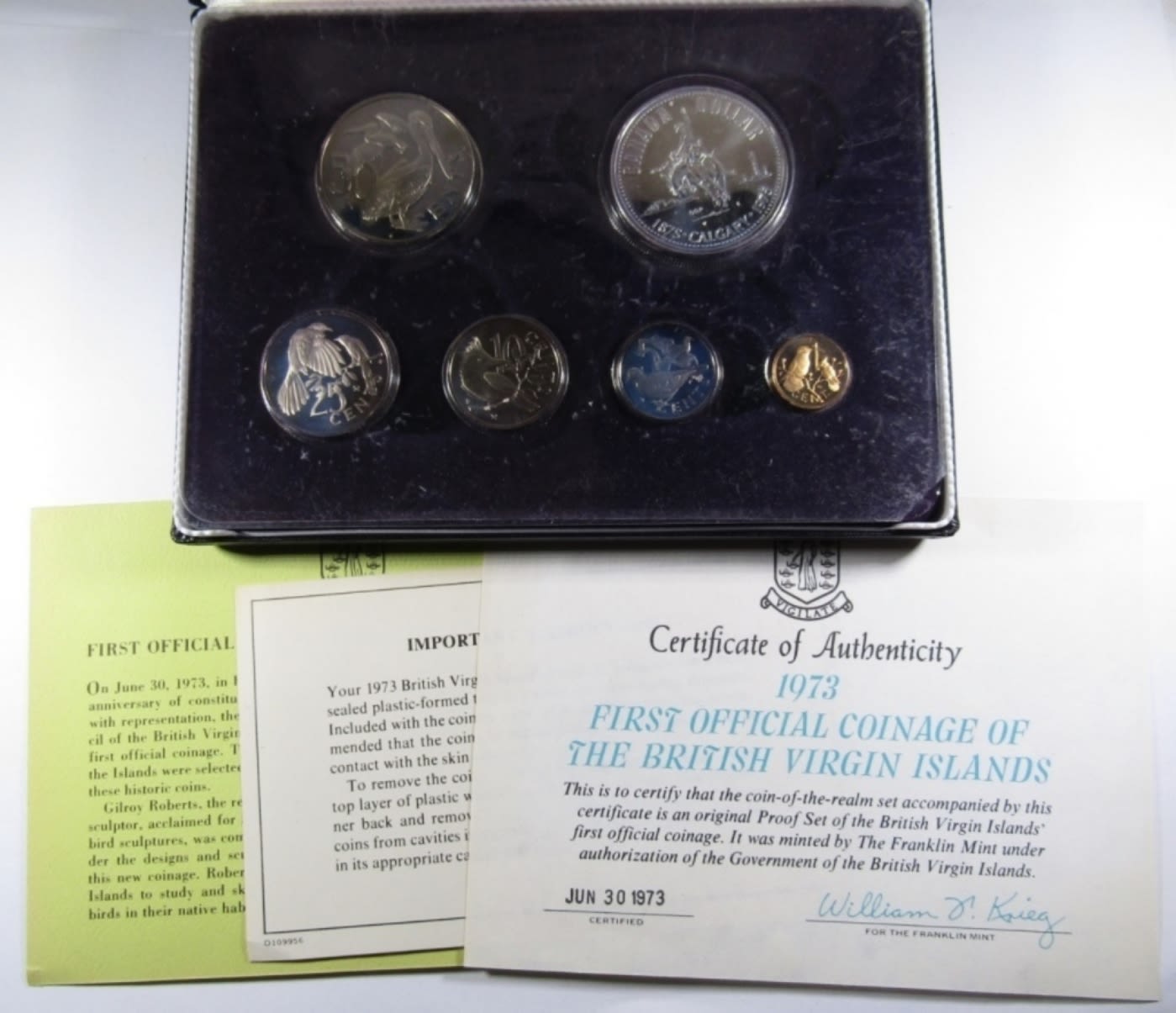 FIRST OFFICIAL COINAGE OF THE BRITHISH VIRGIN ISLANDS, THE FRANKLIN MINT. WITH CASE & COA. PLASTIC OPENED.
