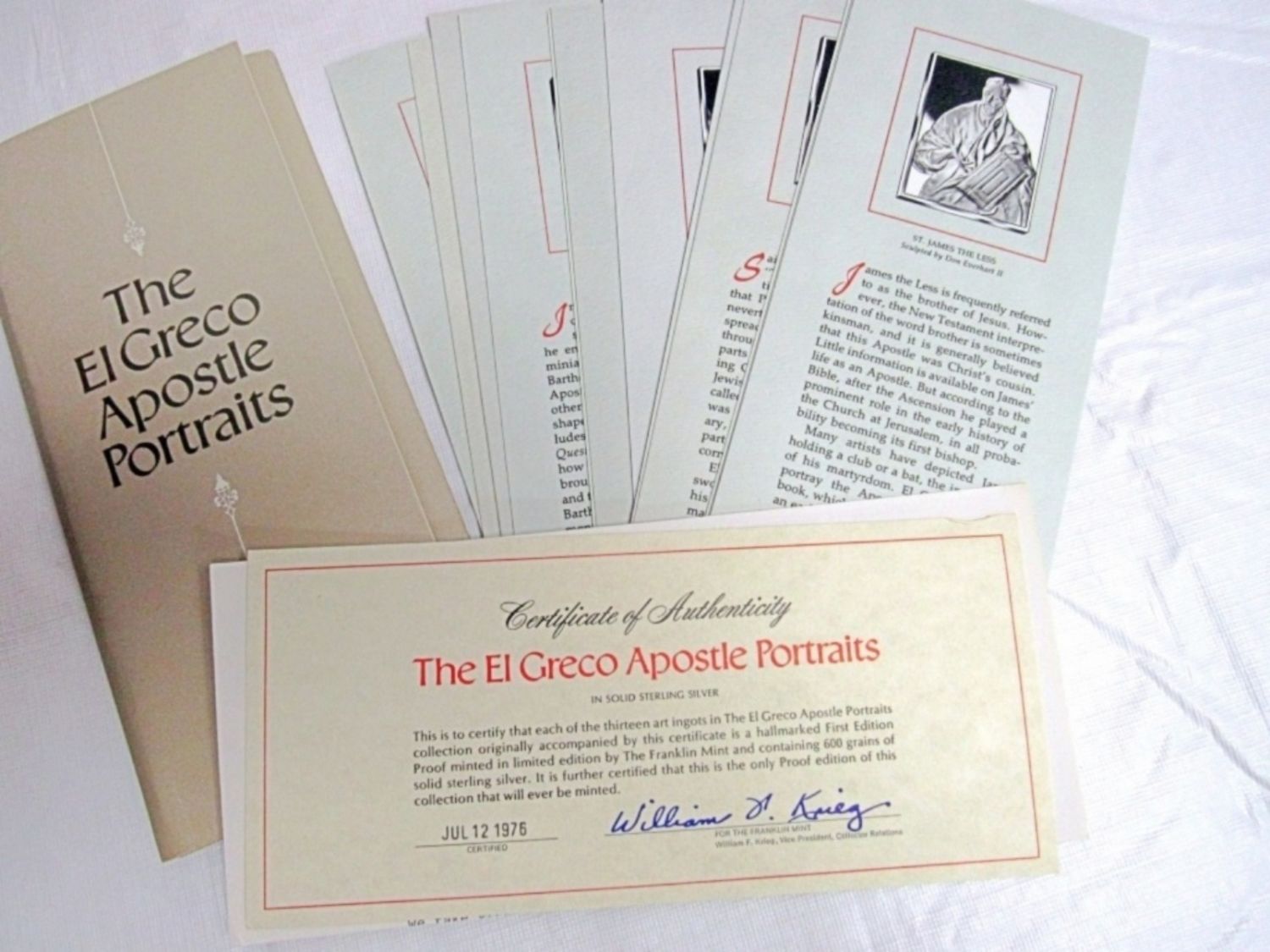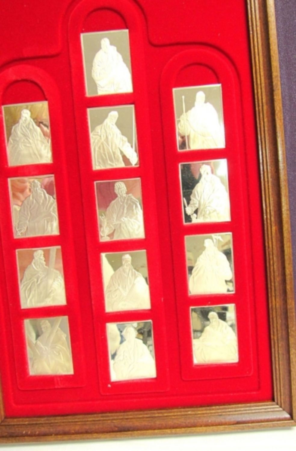 (13) STERLING SILVER BARS 1.25 ozt EACH (338 dwt) of BEAUTIFUL DESIGNED APOSTLE PORTRAITS in VERY NICE DISPLAY with ALL THE PAPERS